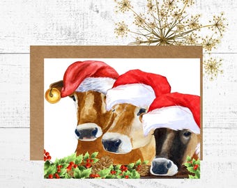 Highland Cow Christmas Card, Watercolor Greeting Card Printed from Original Art