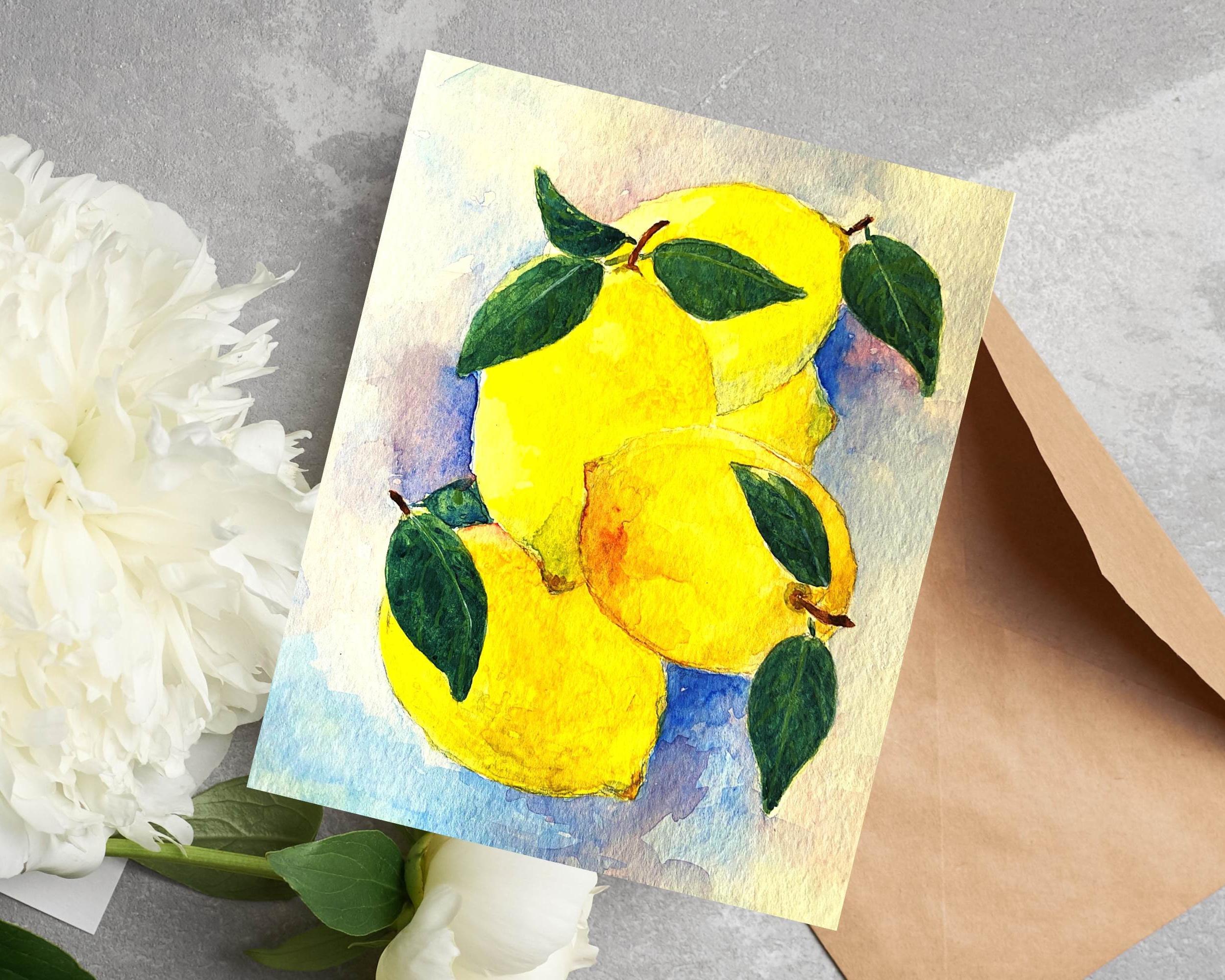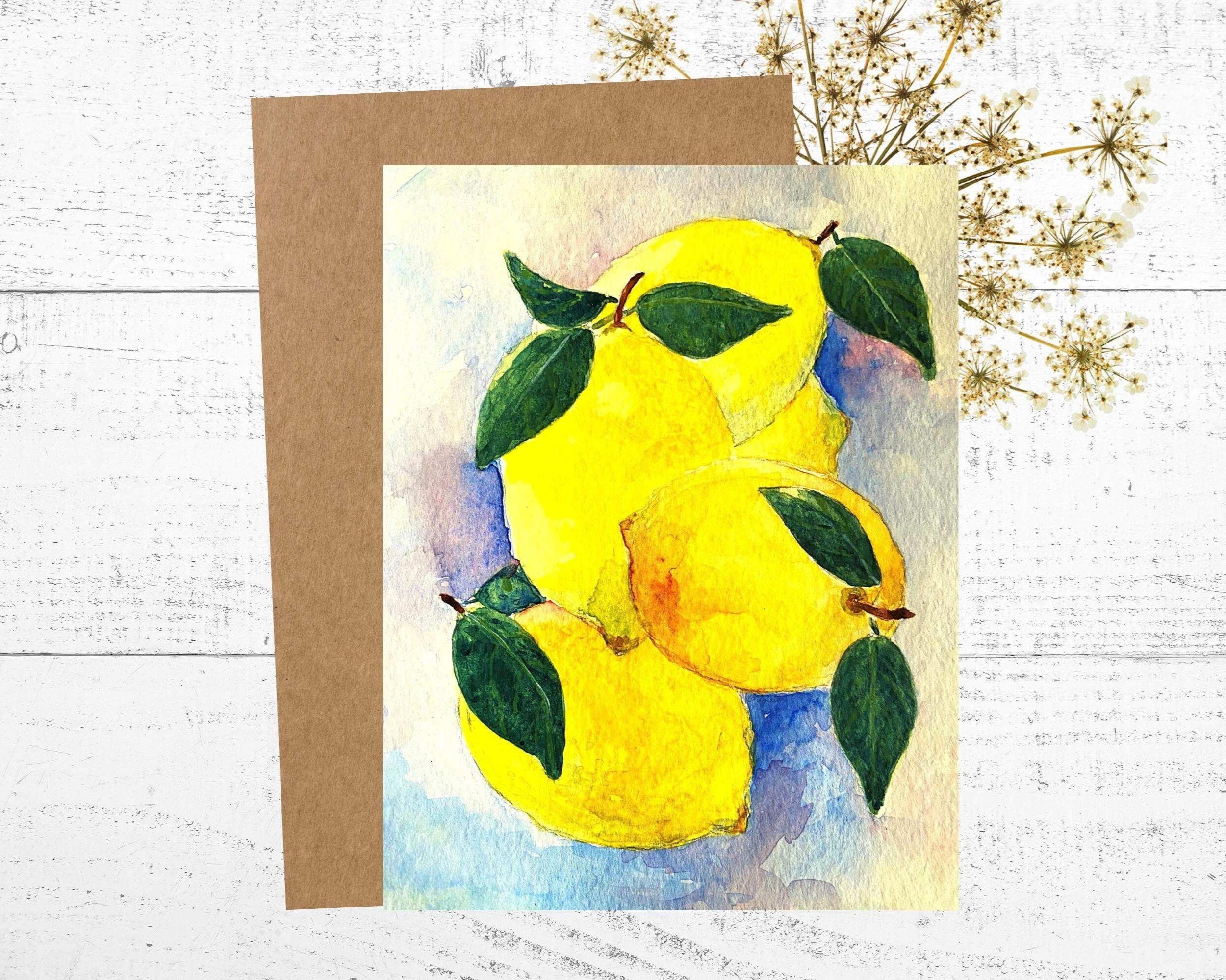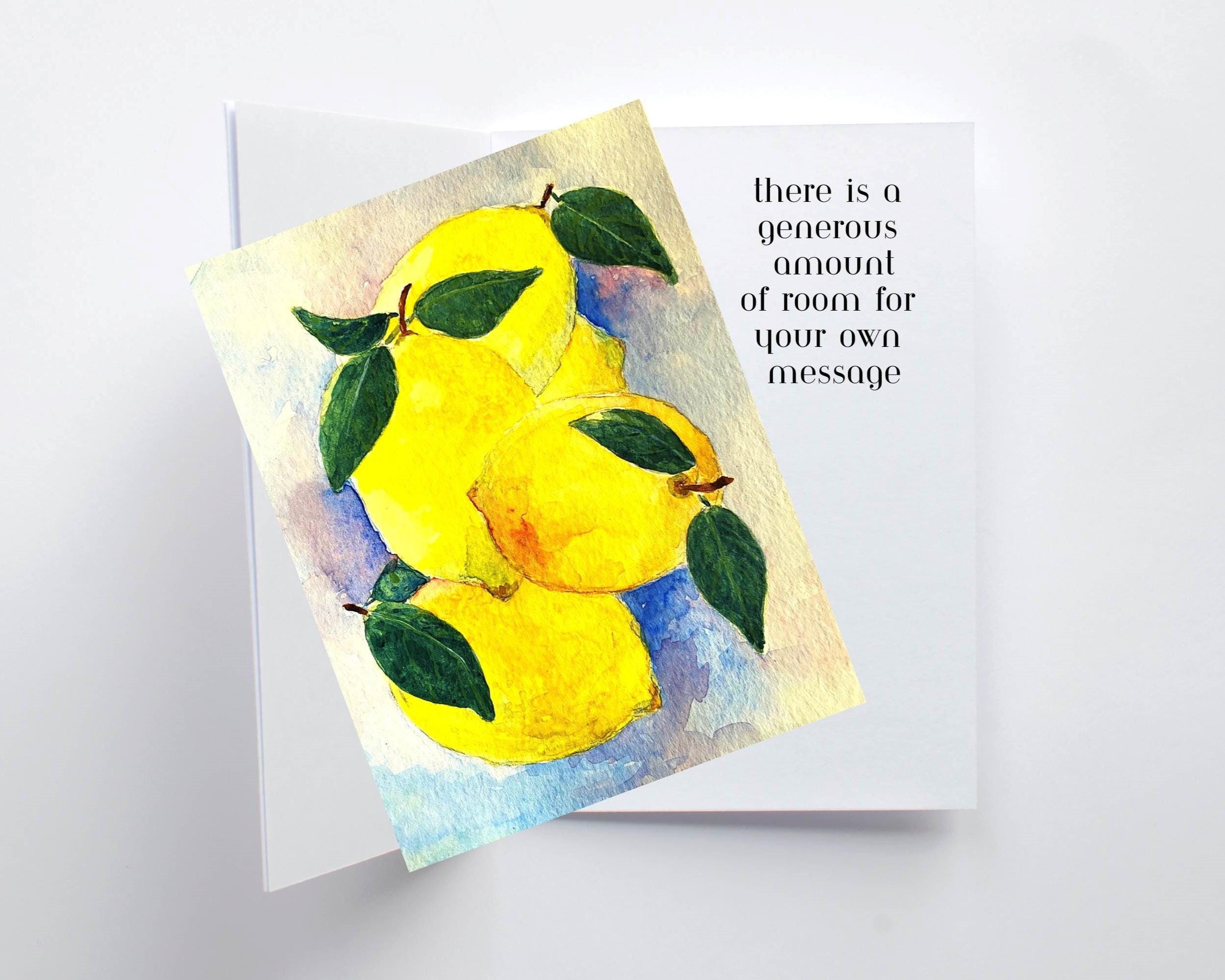Greeting card made from my hand painted watercolor painting on paper titled "Five Lemons"