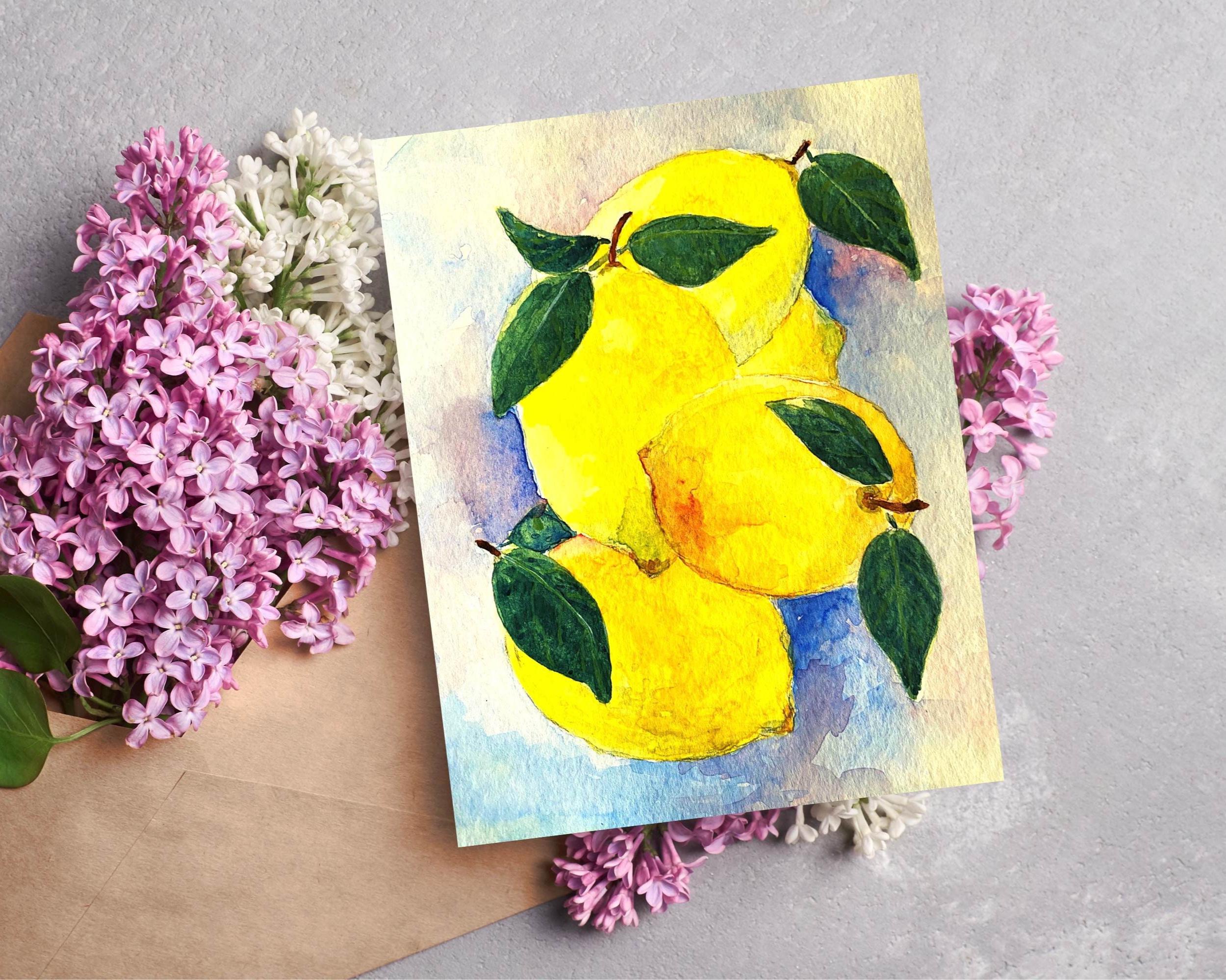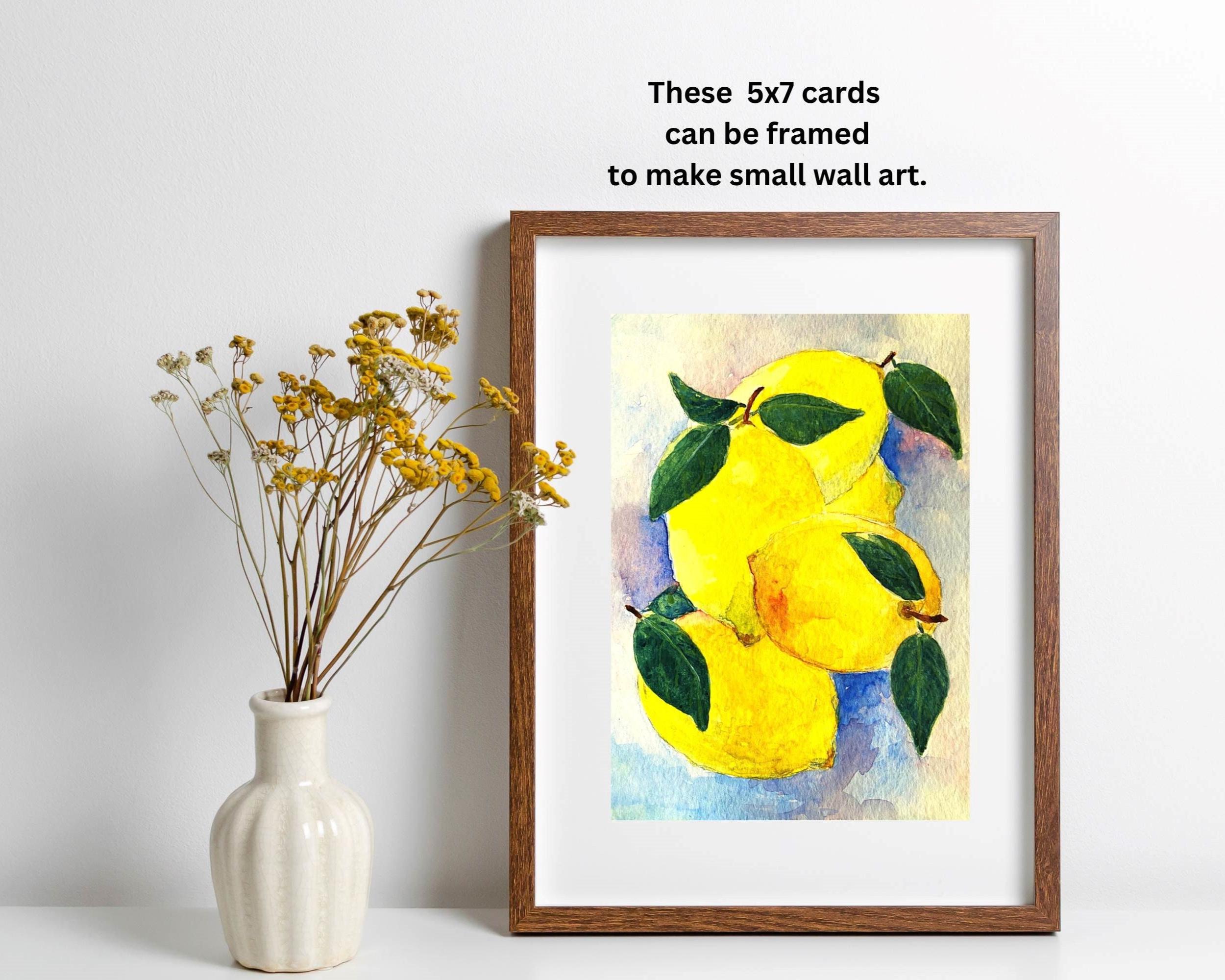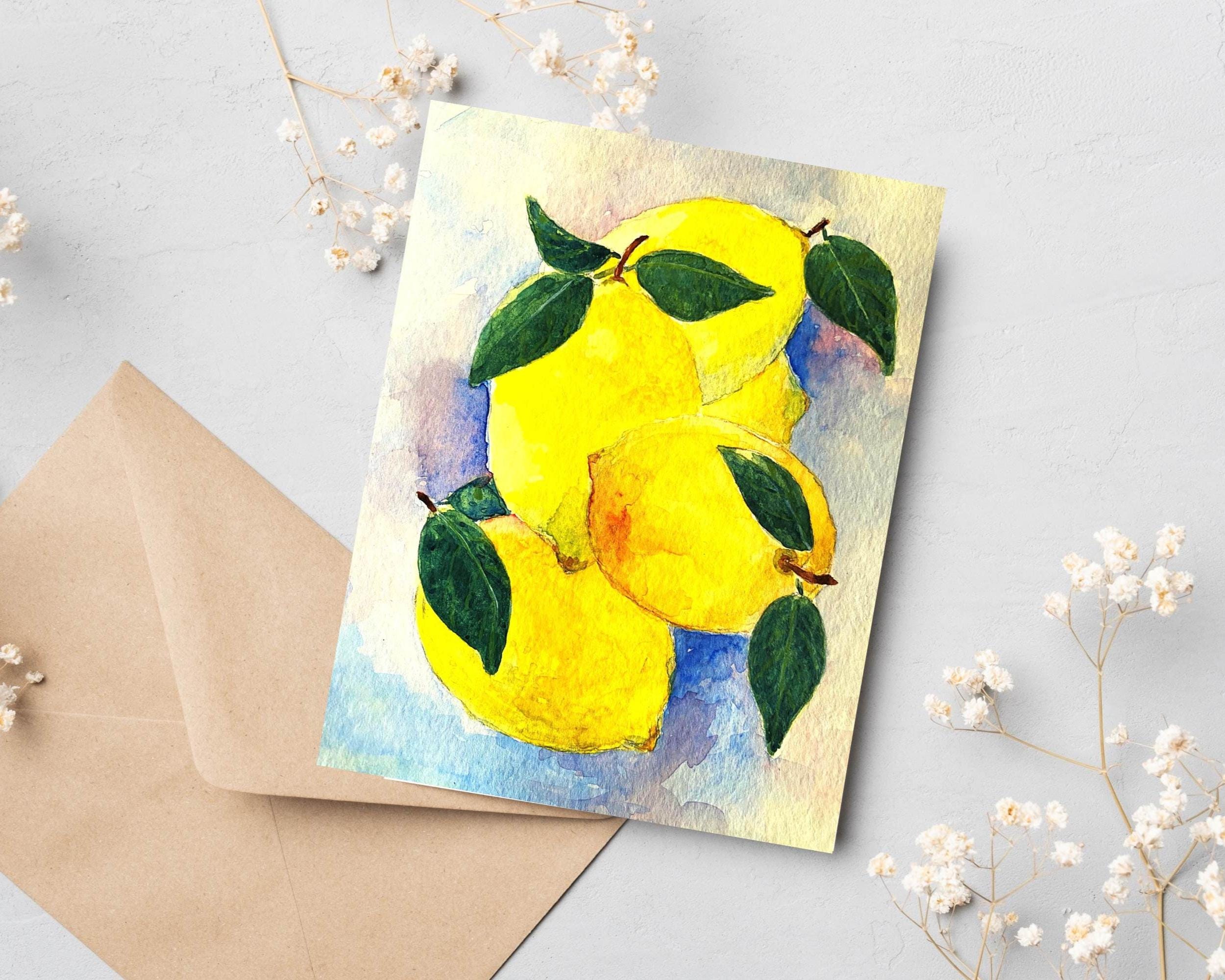 Greeting card made from my hand painted watercolor painting on paper titled "Five Lemons"