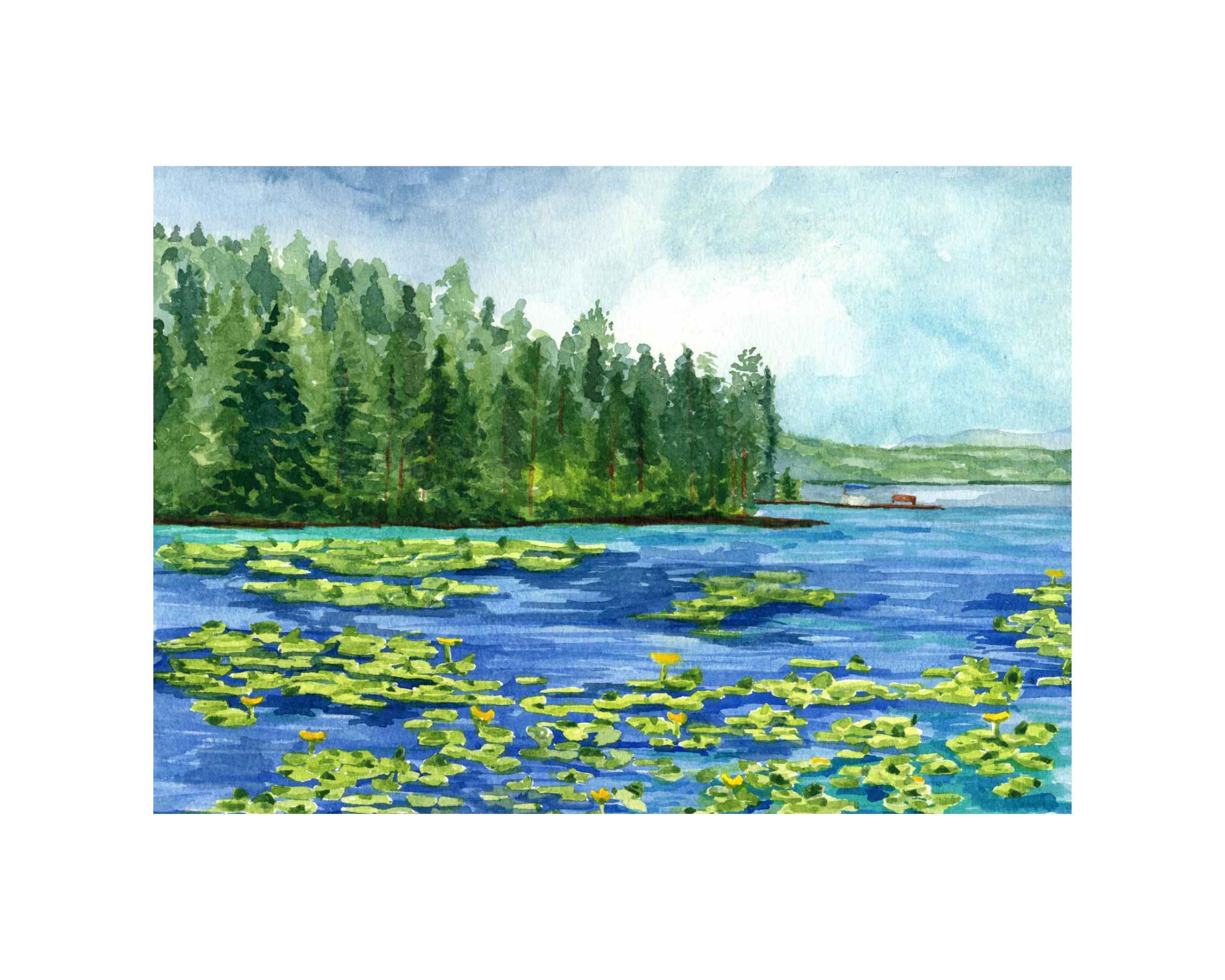 I painted this after a drive around Hayden Lake. This lake was so beautiful. I was especially struck by the lily pads and flowers that were blooming.