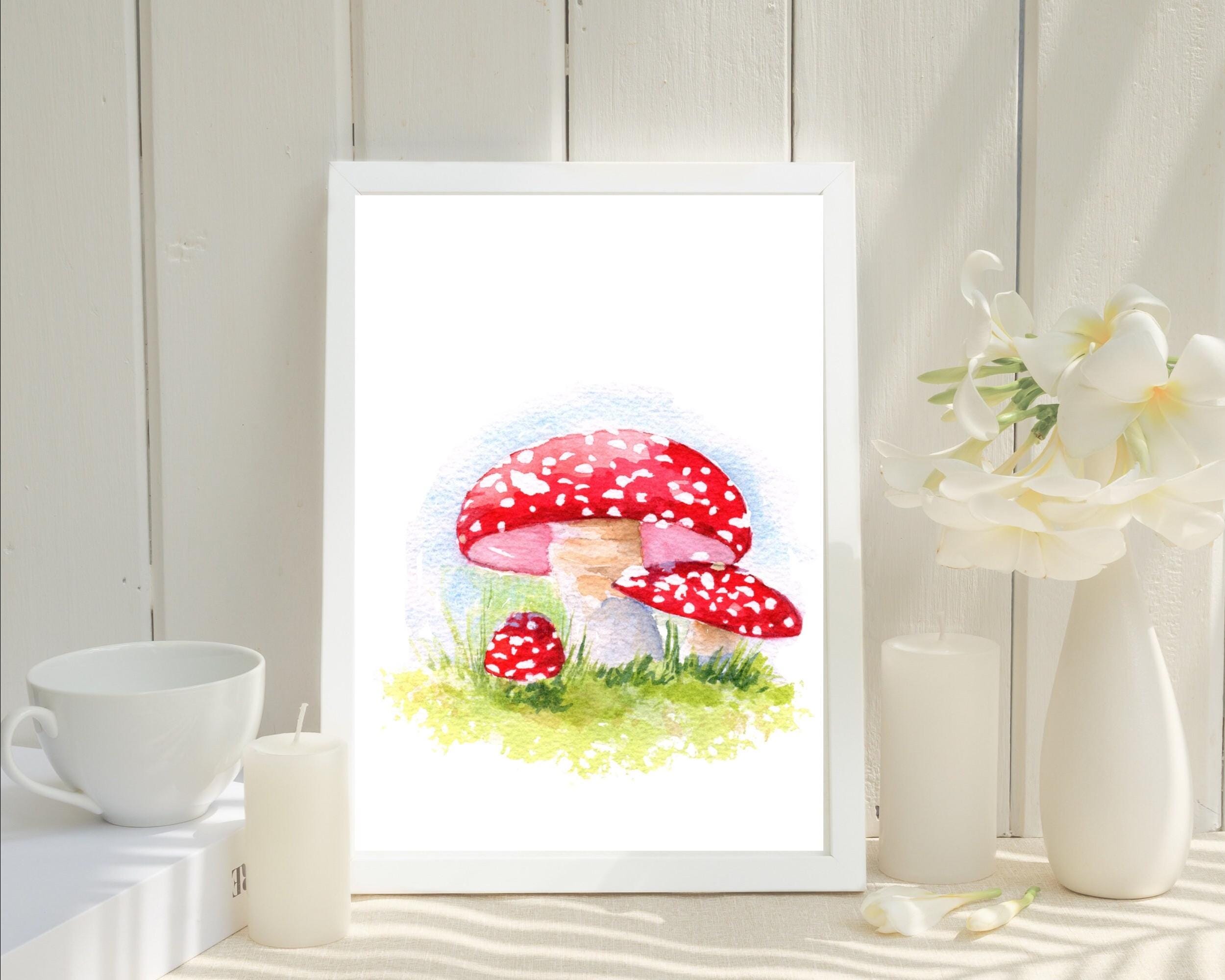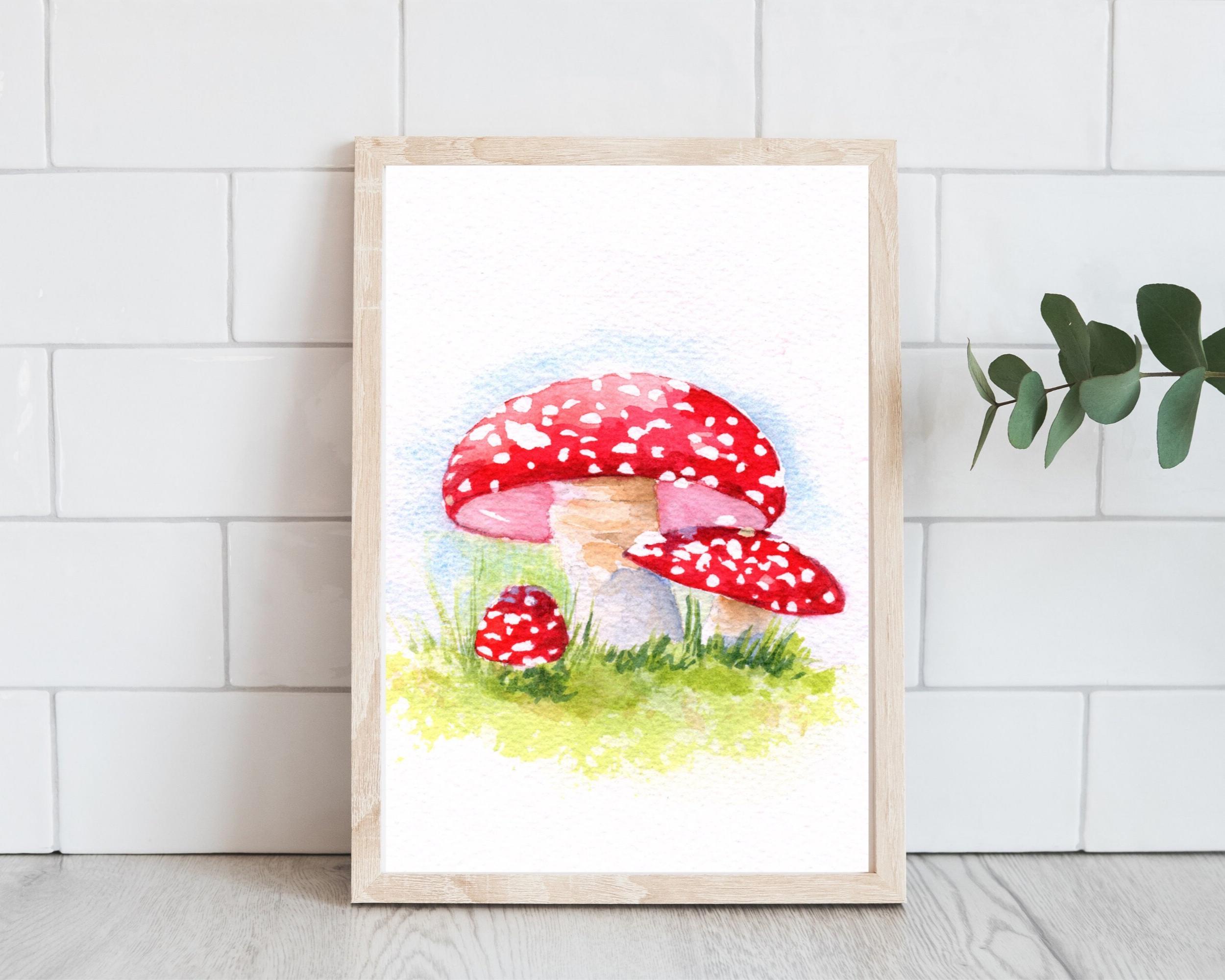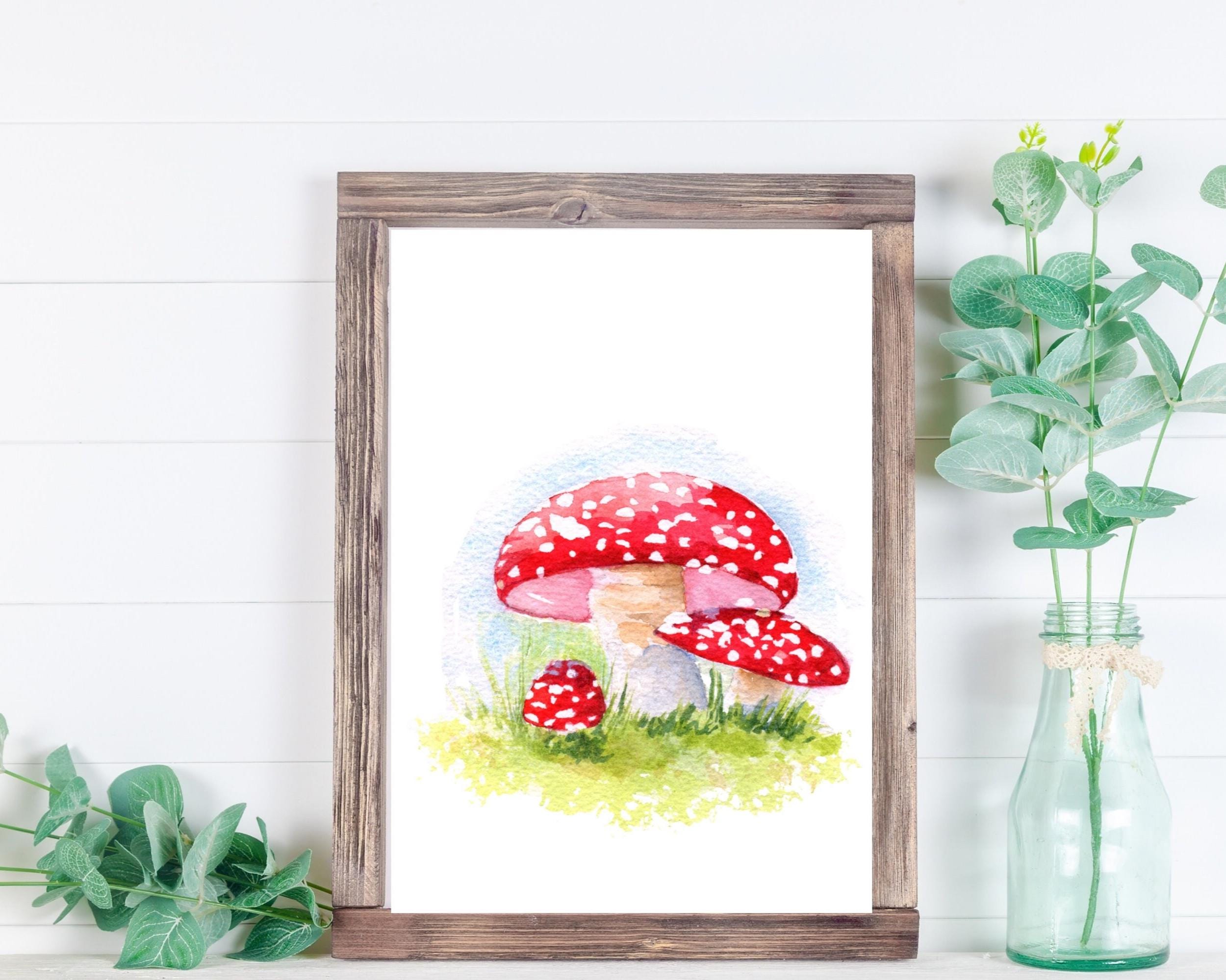 Bring the whimsy of magical forests into your home with this watercolor mushroom painting. Add a touch of nature to any room.