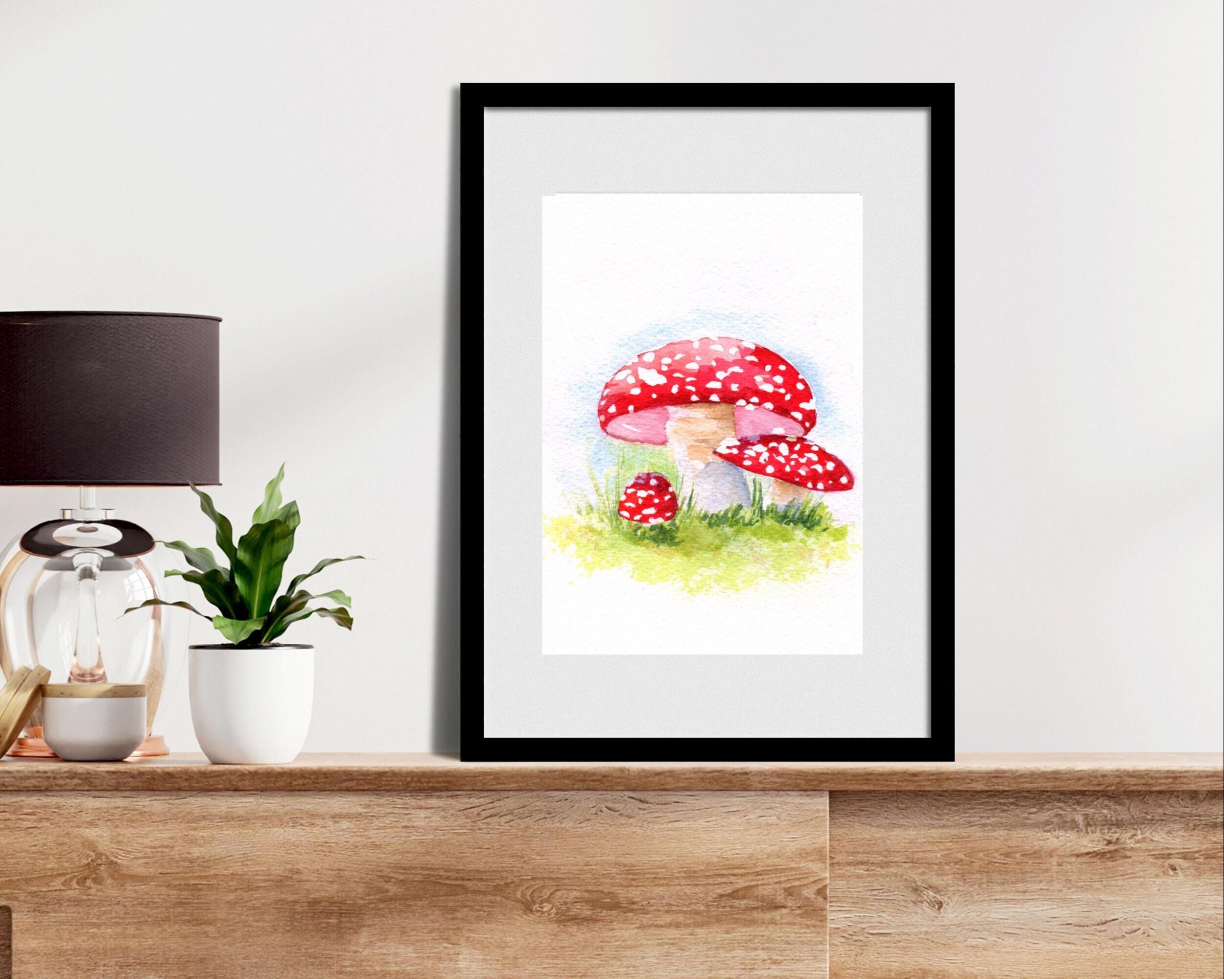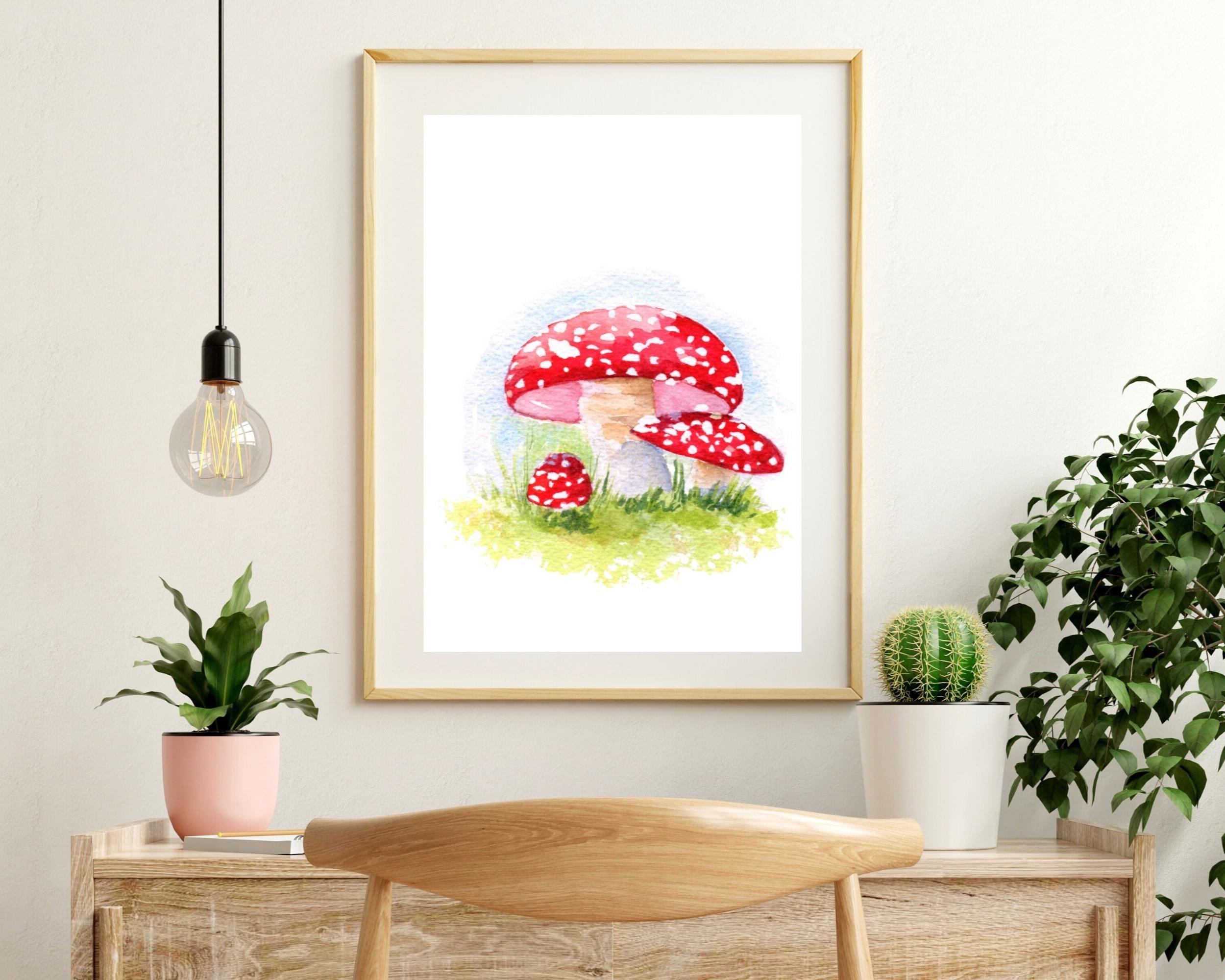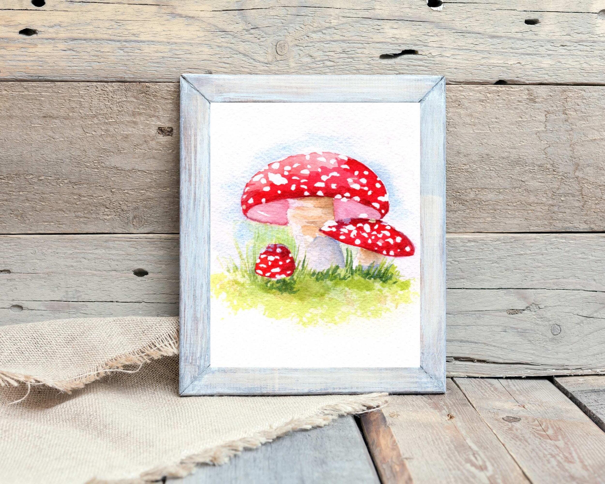 Bring the whimsy of magical forests into your home with this watercolor mushroom painting. Add a touch of nature to any room.