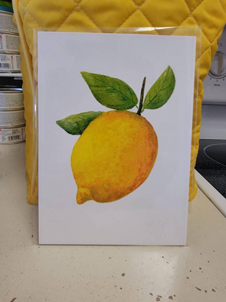 Fine art prints made from my original lemon watercolor painting on paper titled "Cheery lemon".