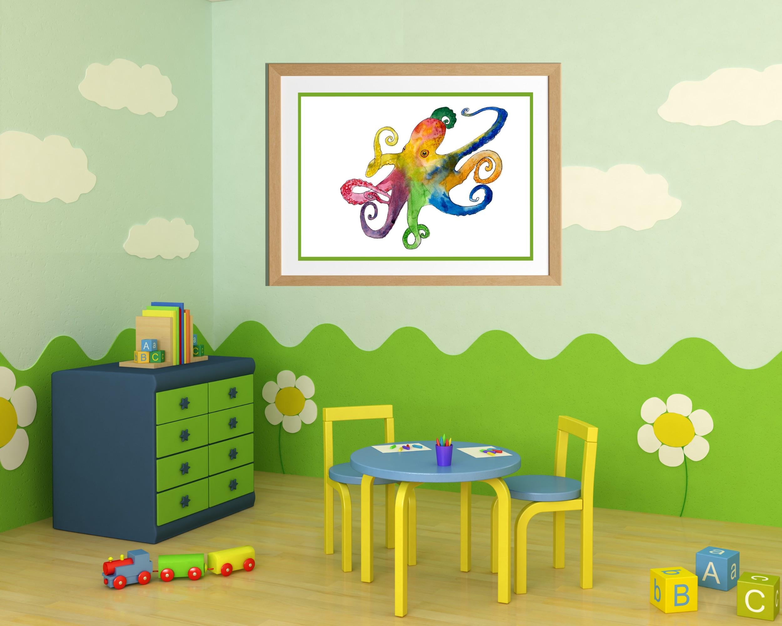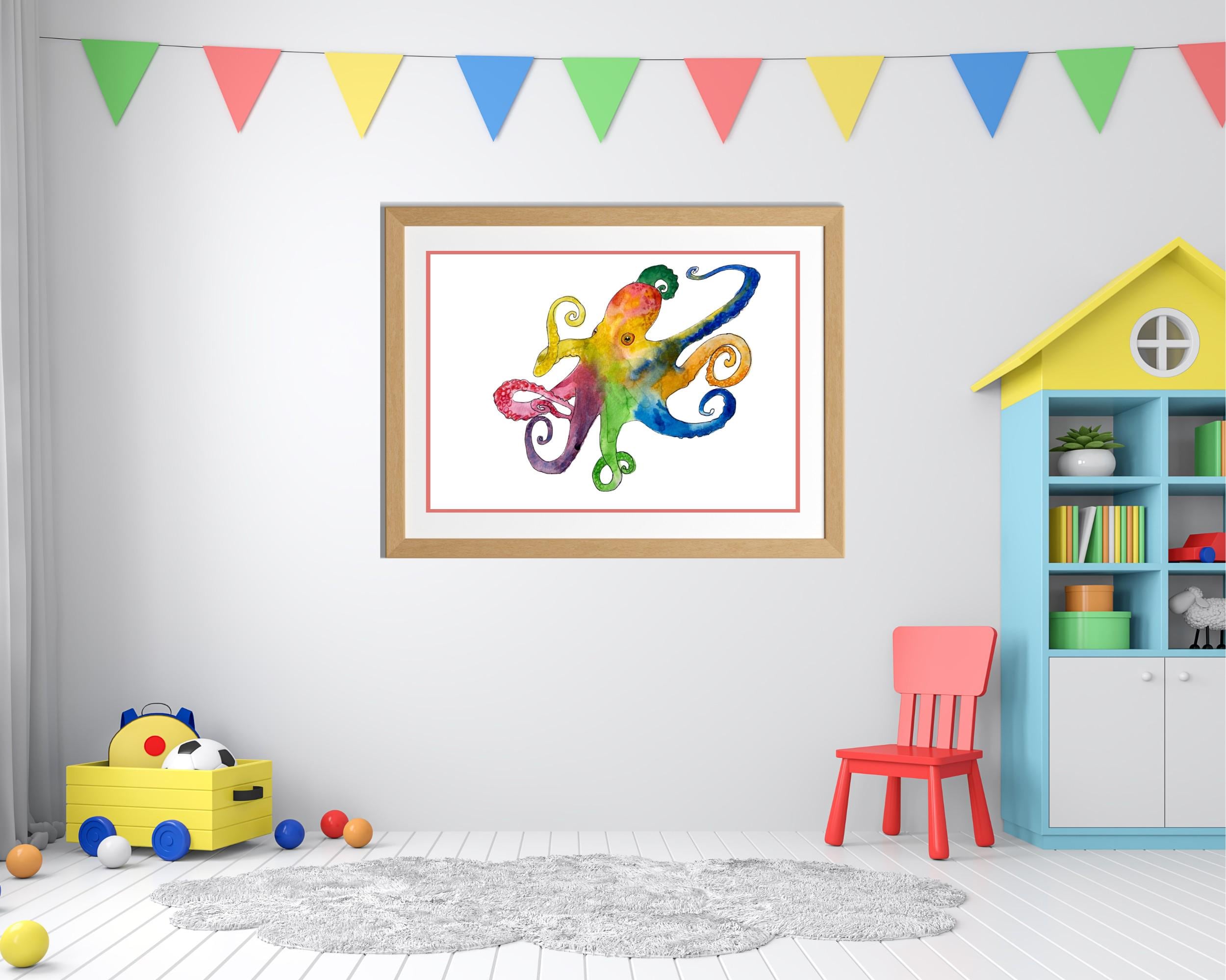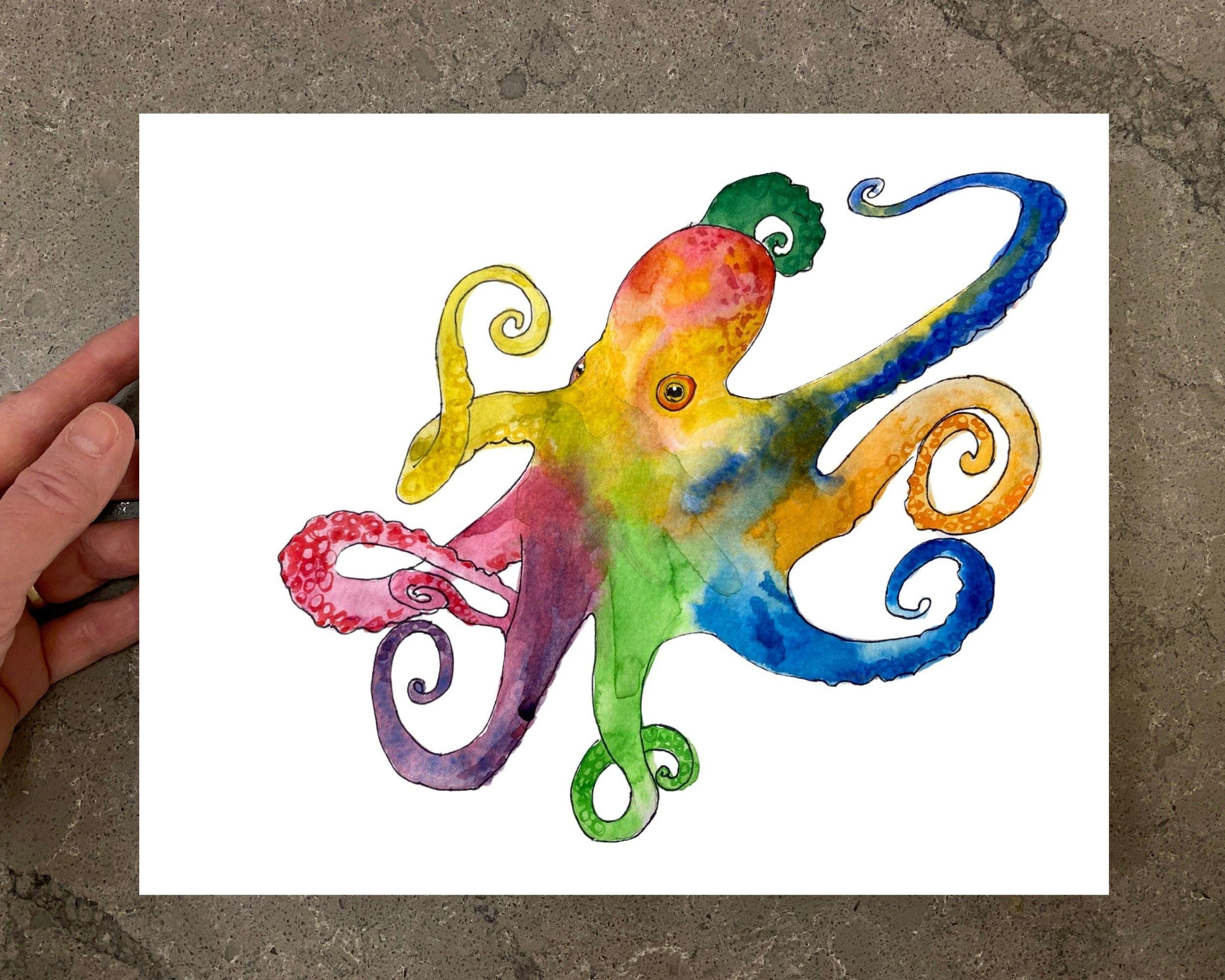 This is a print made from my creative watercolor painting of an Octopus. The painting is titled 'Octopus II'.