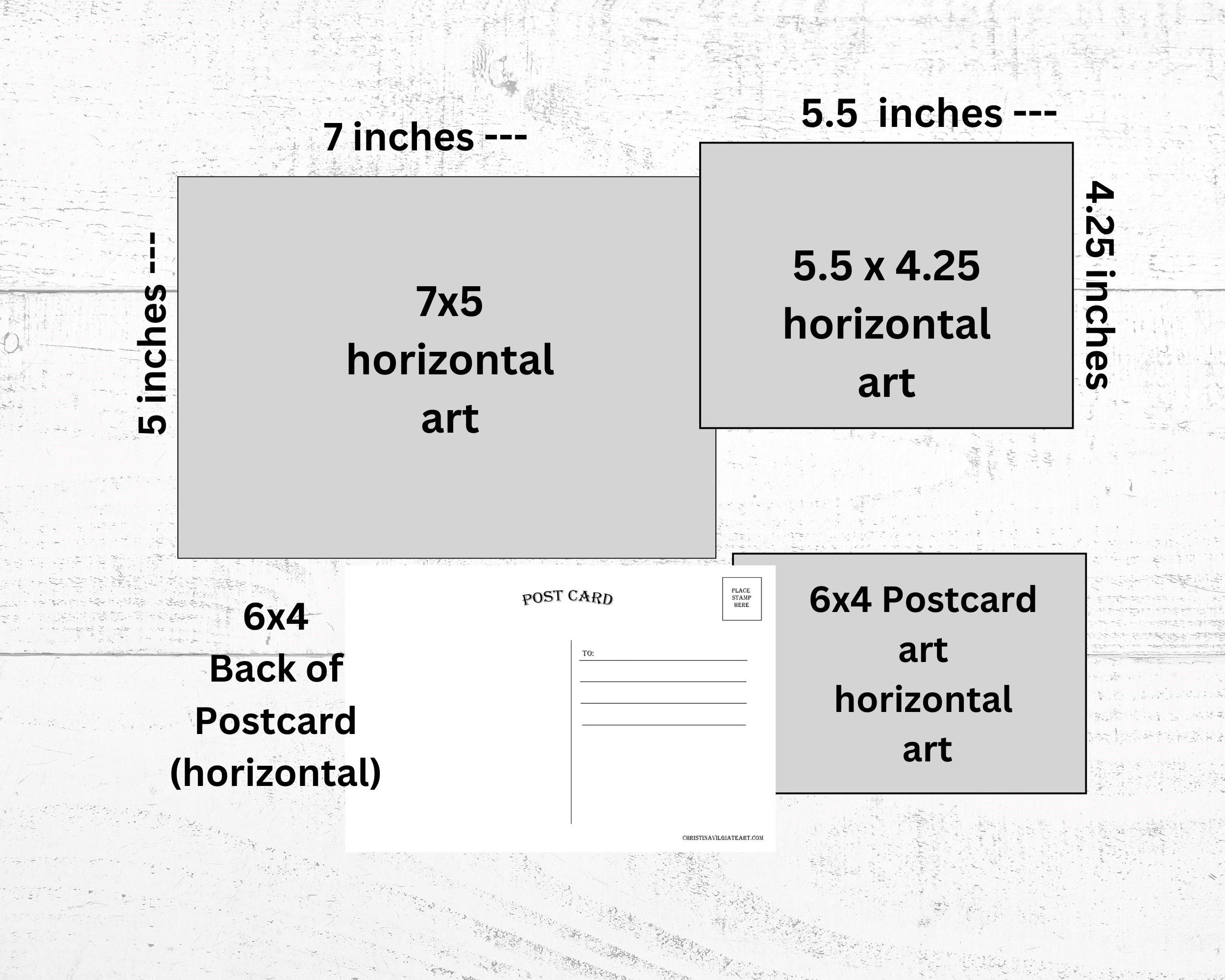 • Sizes are 7"x5" (A7) or 5.5”x 4.25" (A2) , 6"x4" folded card and a 6"x4" flat postcard.