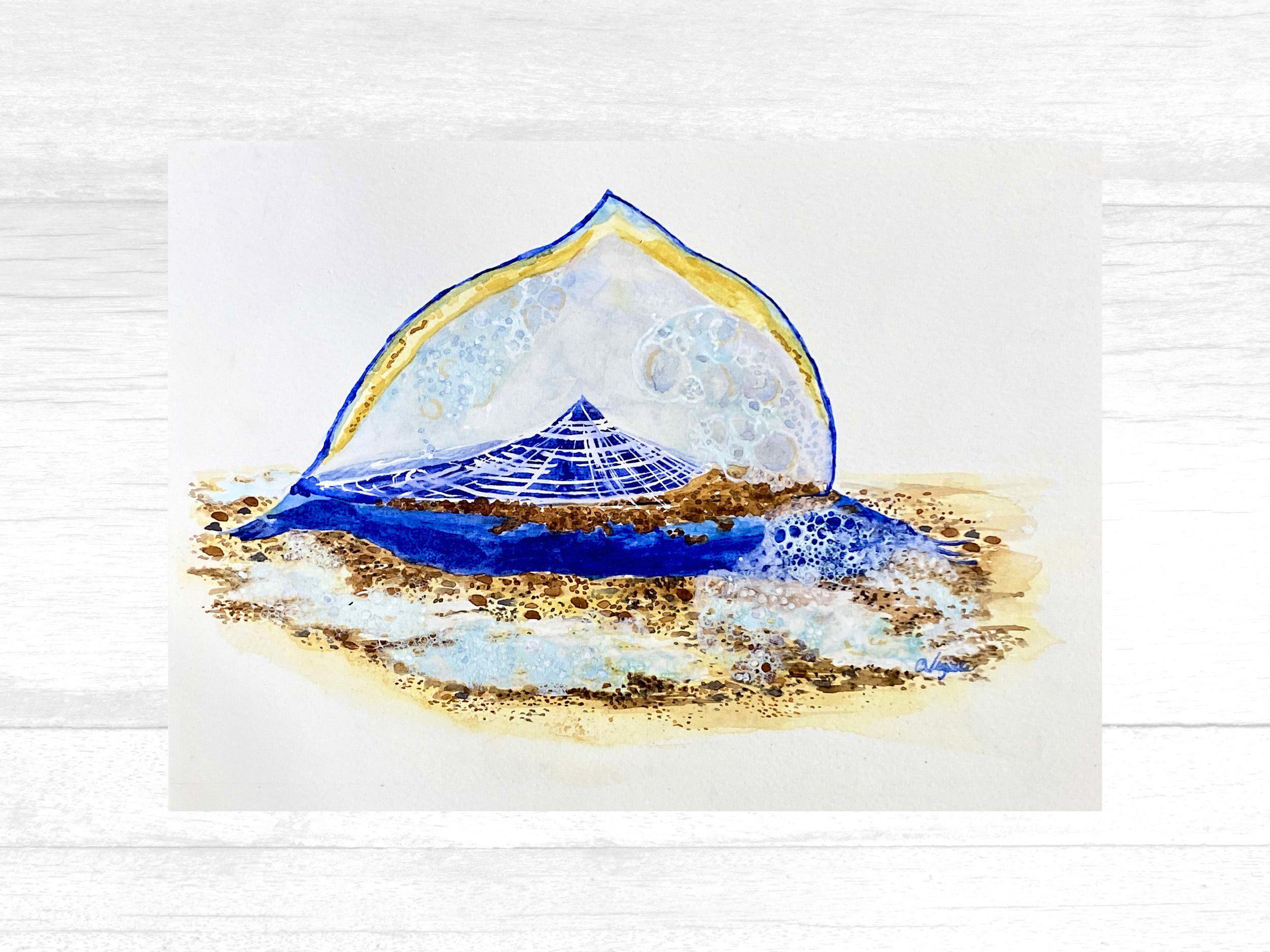 Fine art print made from my original watercolor painting of a velella velella jellyfish.