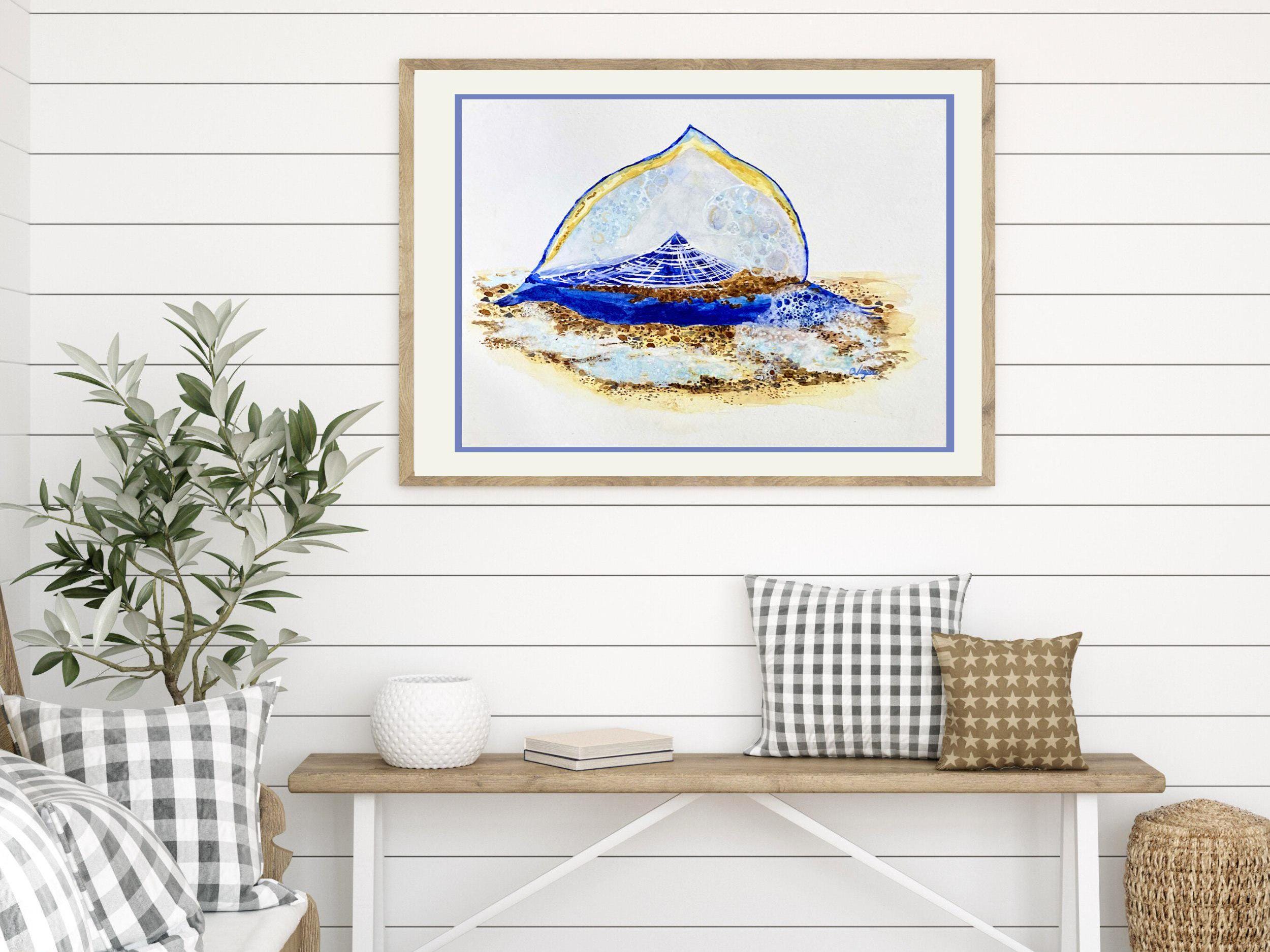 I have to give credit to a customer for the inspiration for this painting. I was amazed at the colorful beauty of this tiny creature. This fun painting would make a great piece of wall art bringing a pop of color to your home decor. This watercolor print would make a great to build a nautical aesthetic in your home or for someone who loves the beach and ocean.