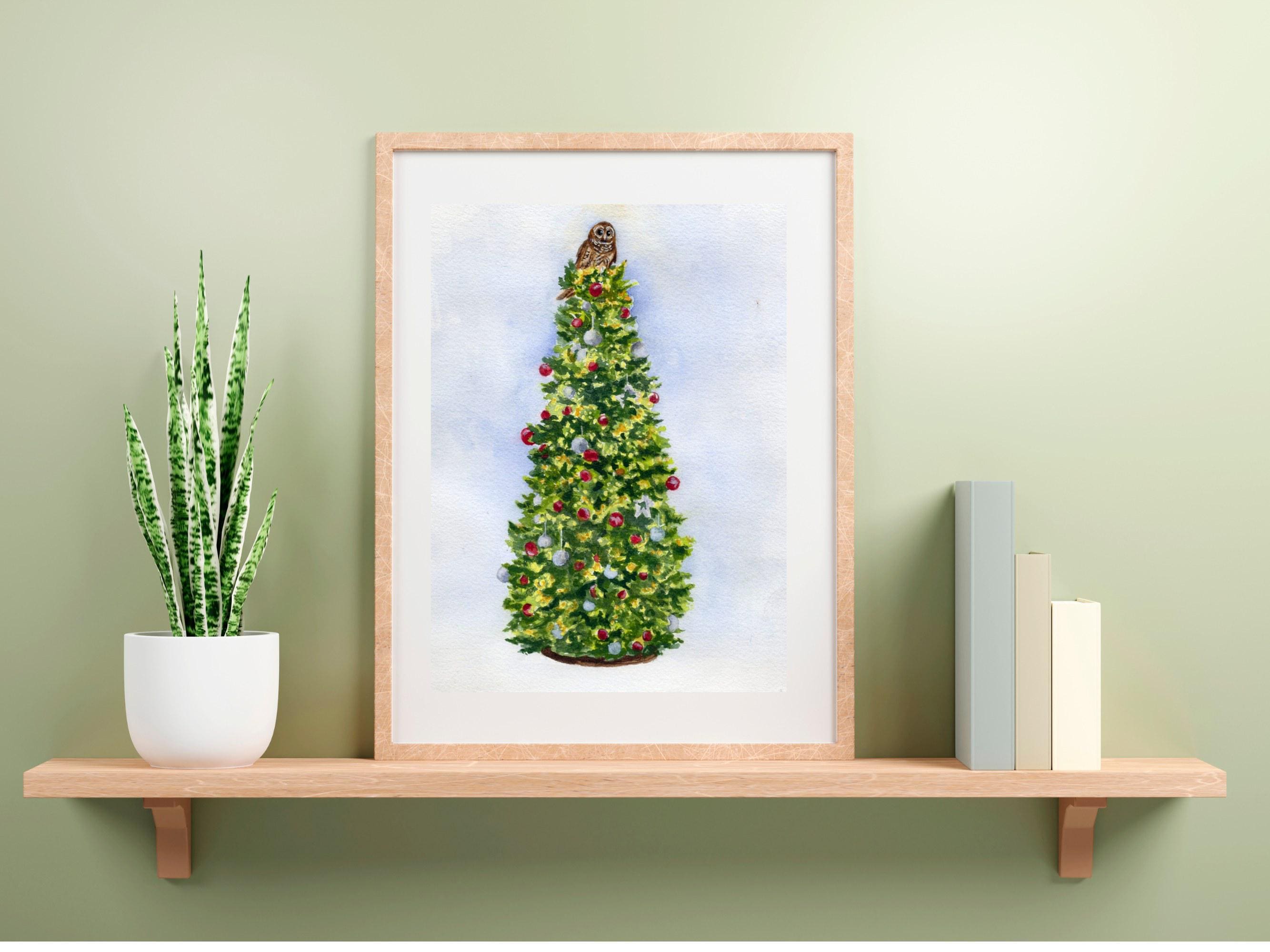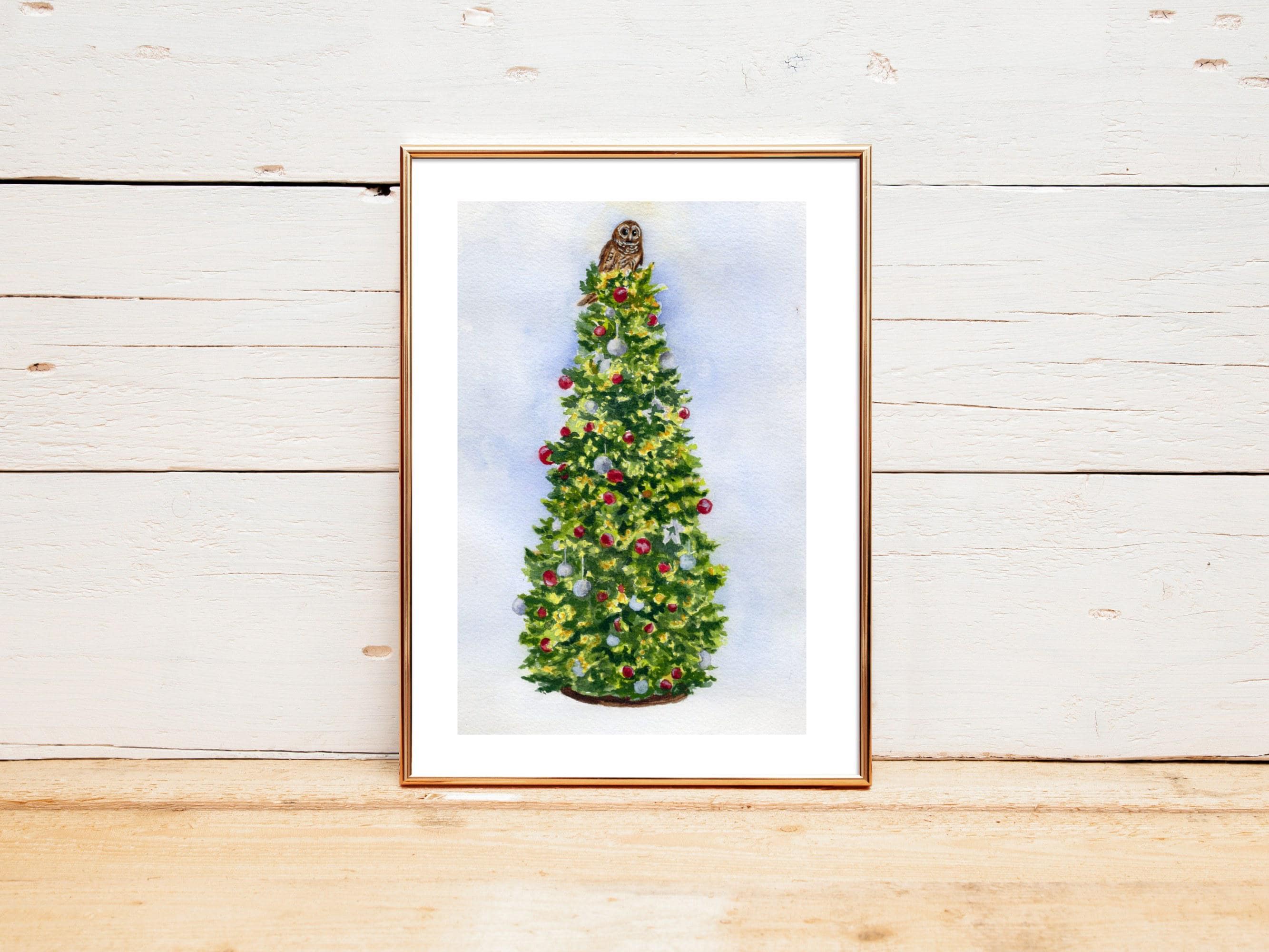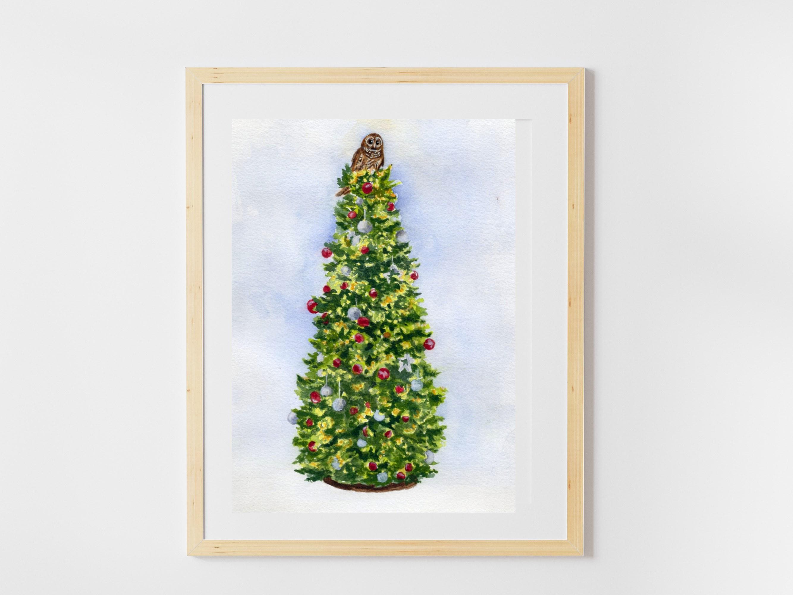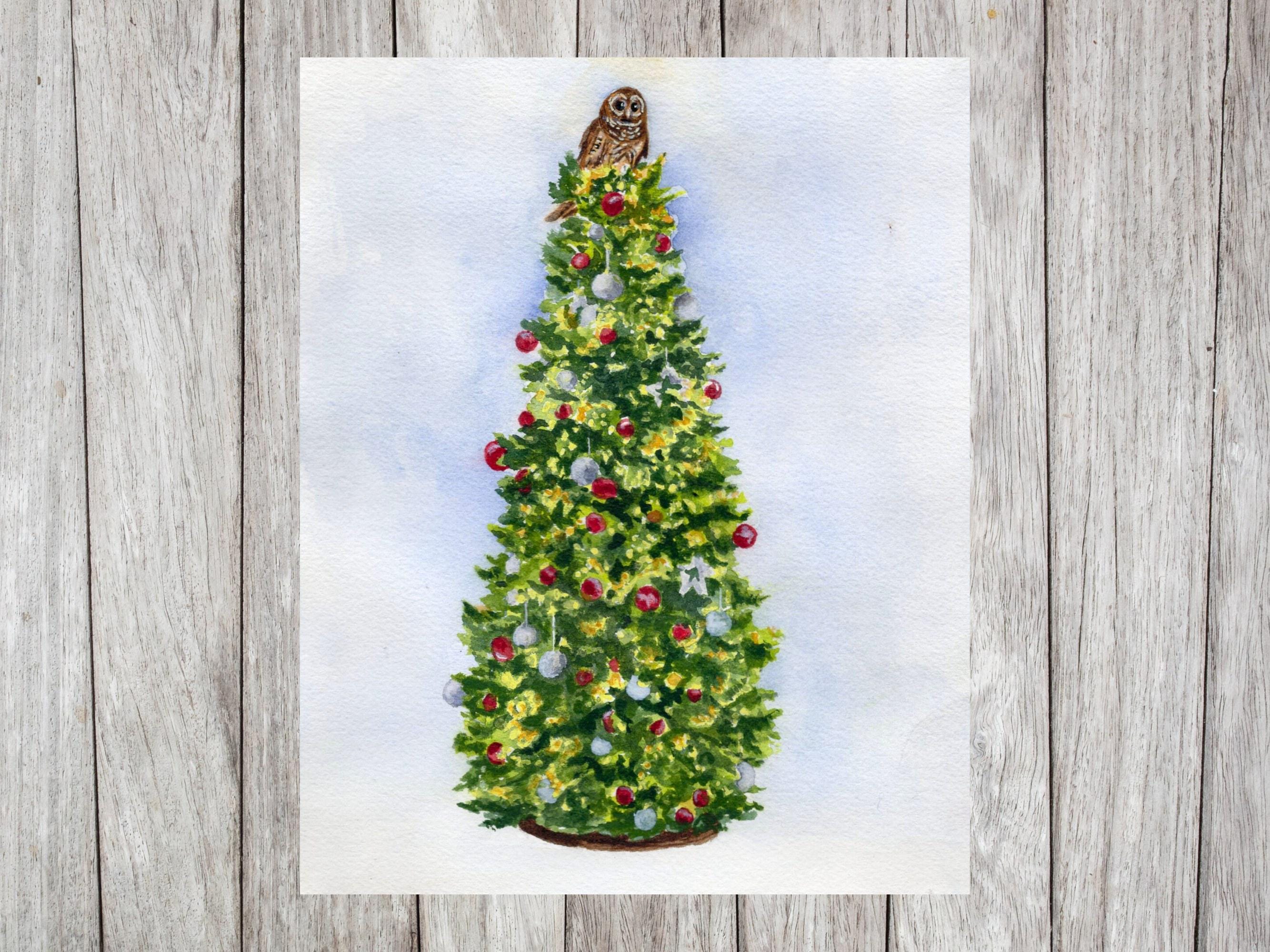 Art Print from my original watercolor painting titled Who? Use this beautiful holiday wall art to bring a touch of Nature themed Christmas to your home. Give a print as a gift to someone who perhaps cannot have a real Christmas tree and a paper tree would be perfect. Prints are available in 5x7, 8x10, 11x14