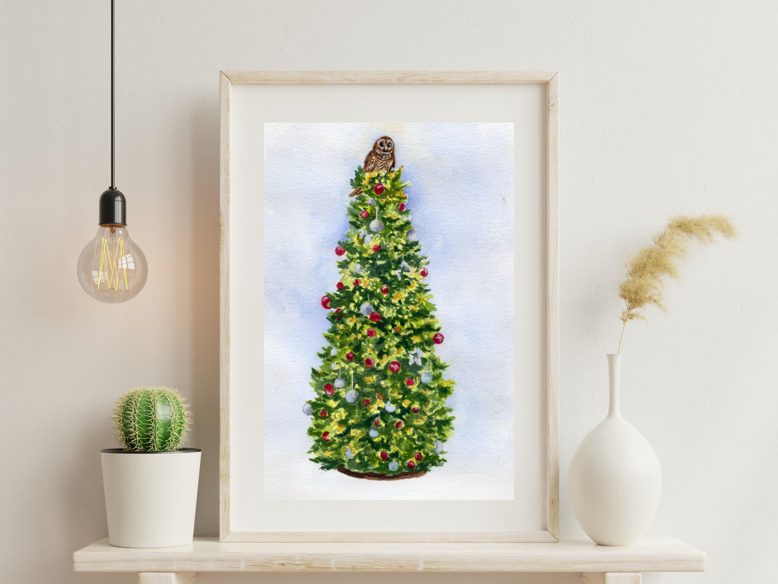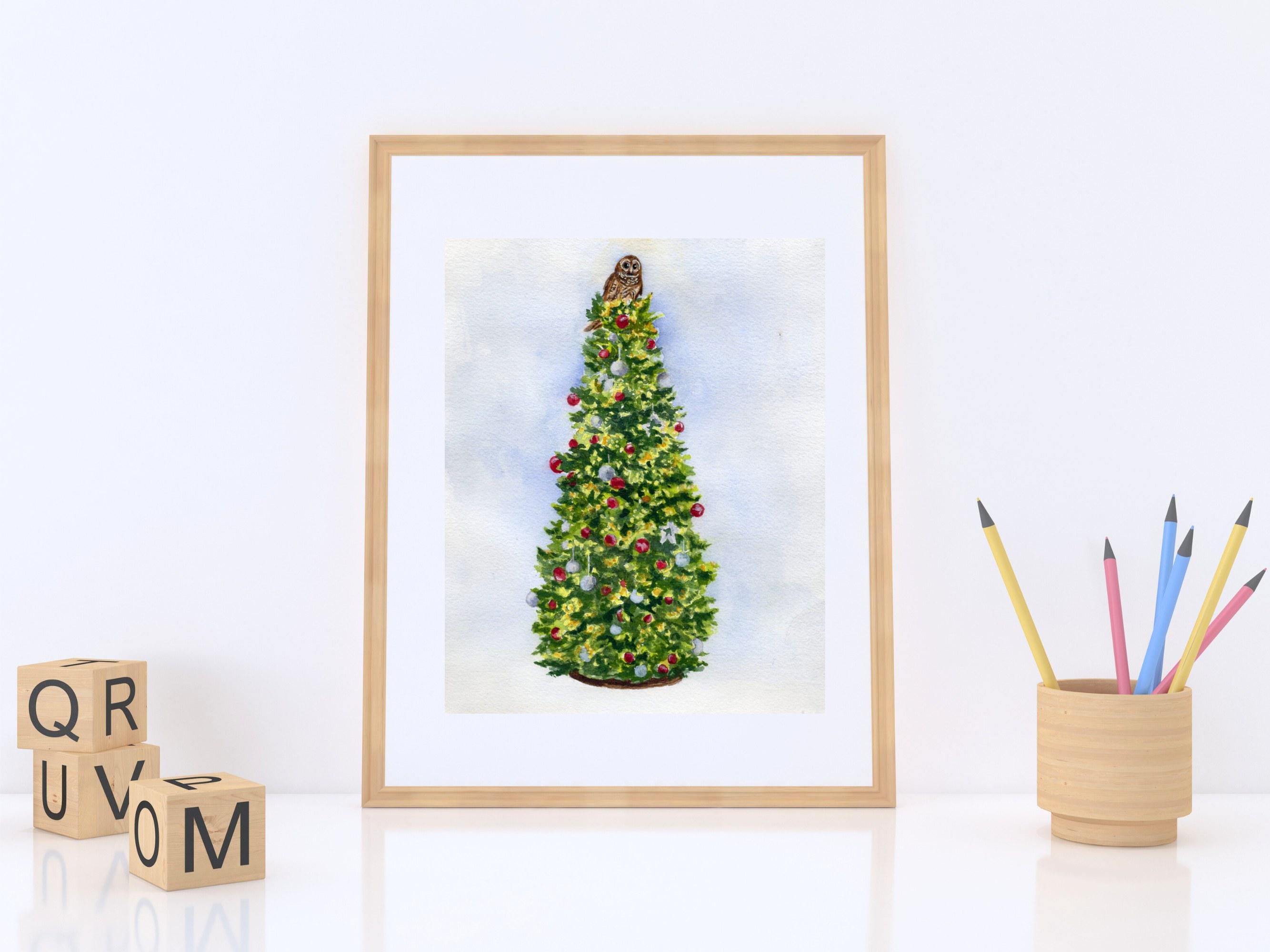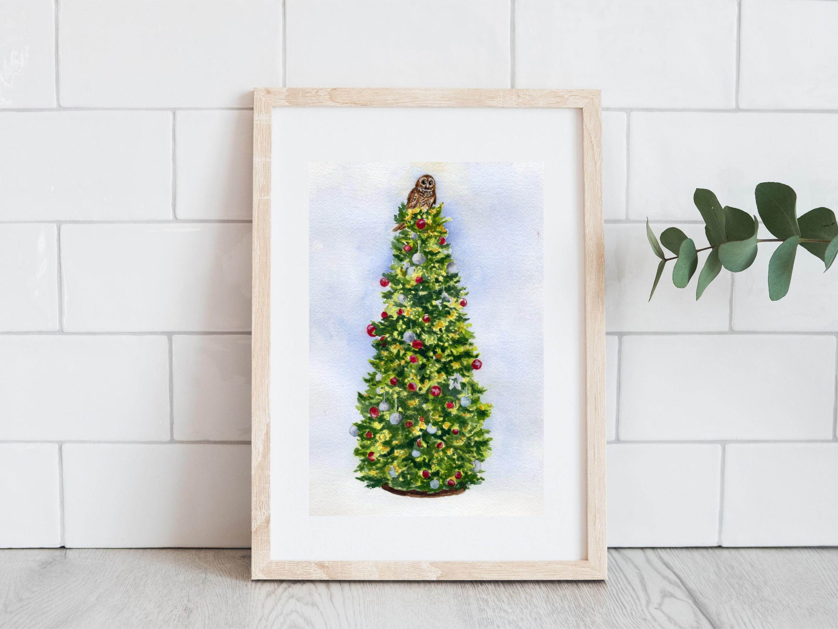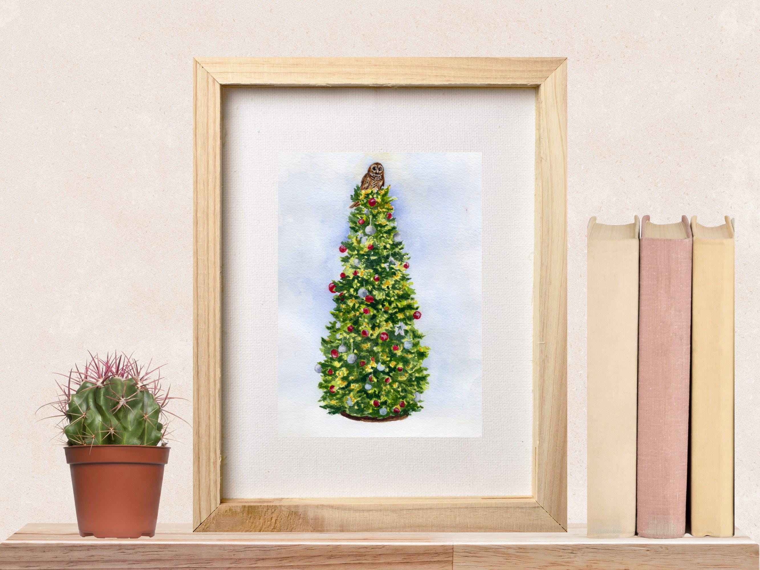 Art Print from my original watercolor painting titled Who? Use this beautiful holiday wall art to bring a touch of Nature themed Christmas to your home. Give a print as a gift to someone who perhaps cannot have a real Christmas tree and a paper tree would be perfect. Prints are available in 5x7, 8x10, 11x14