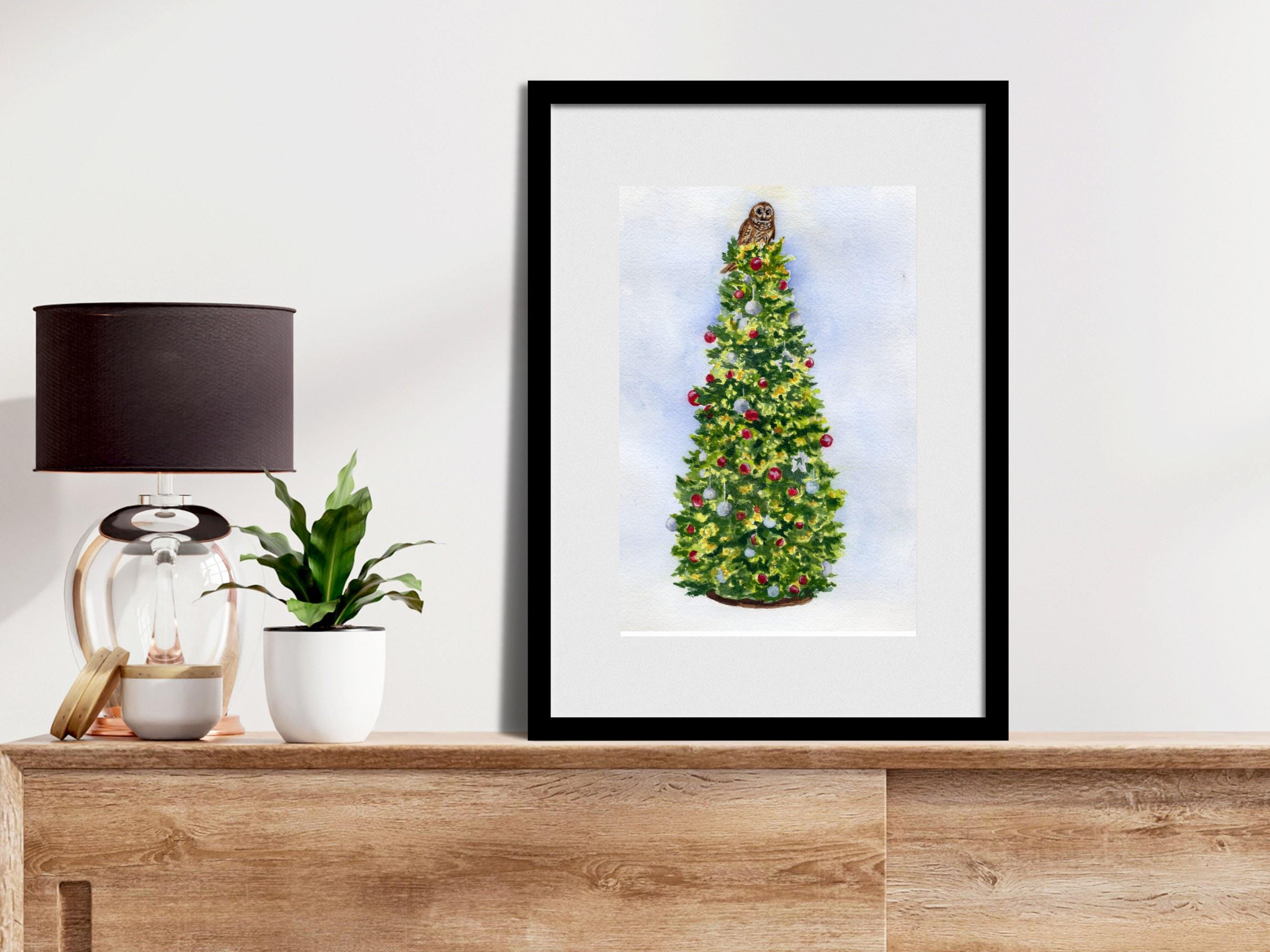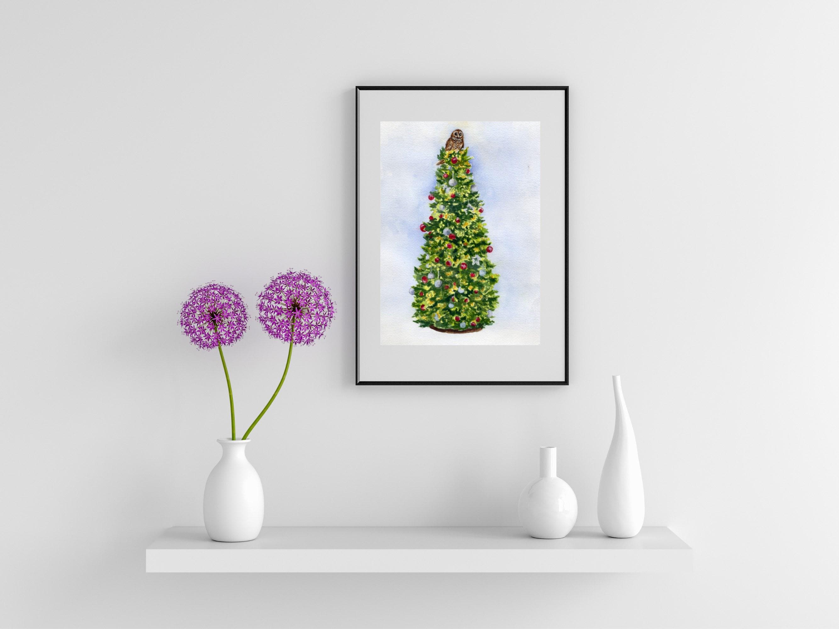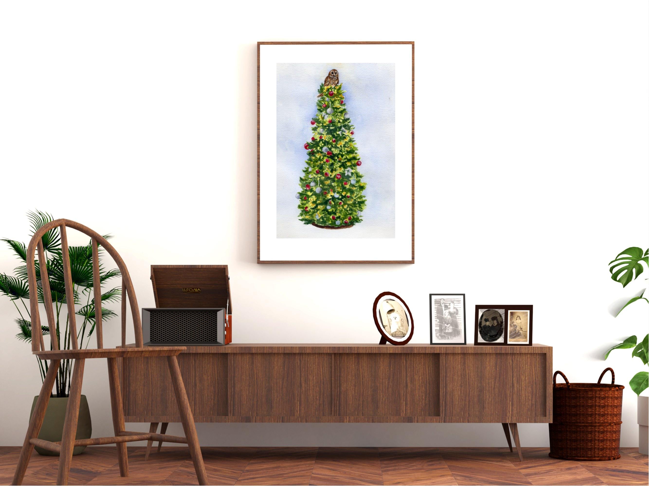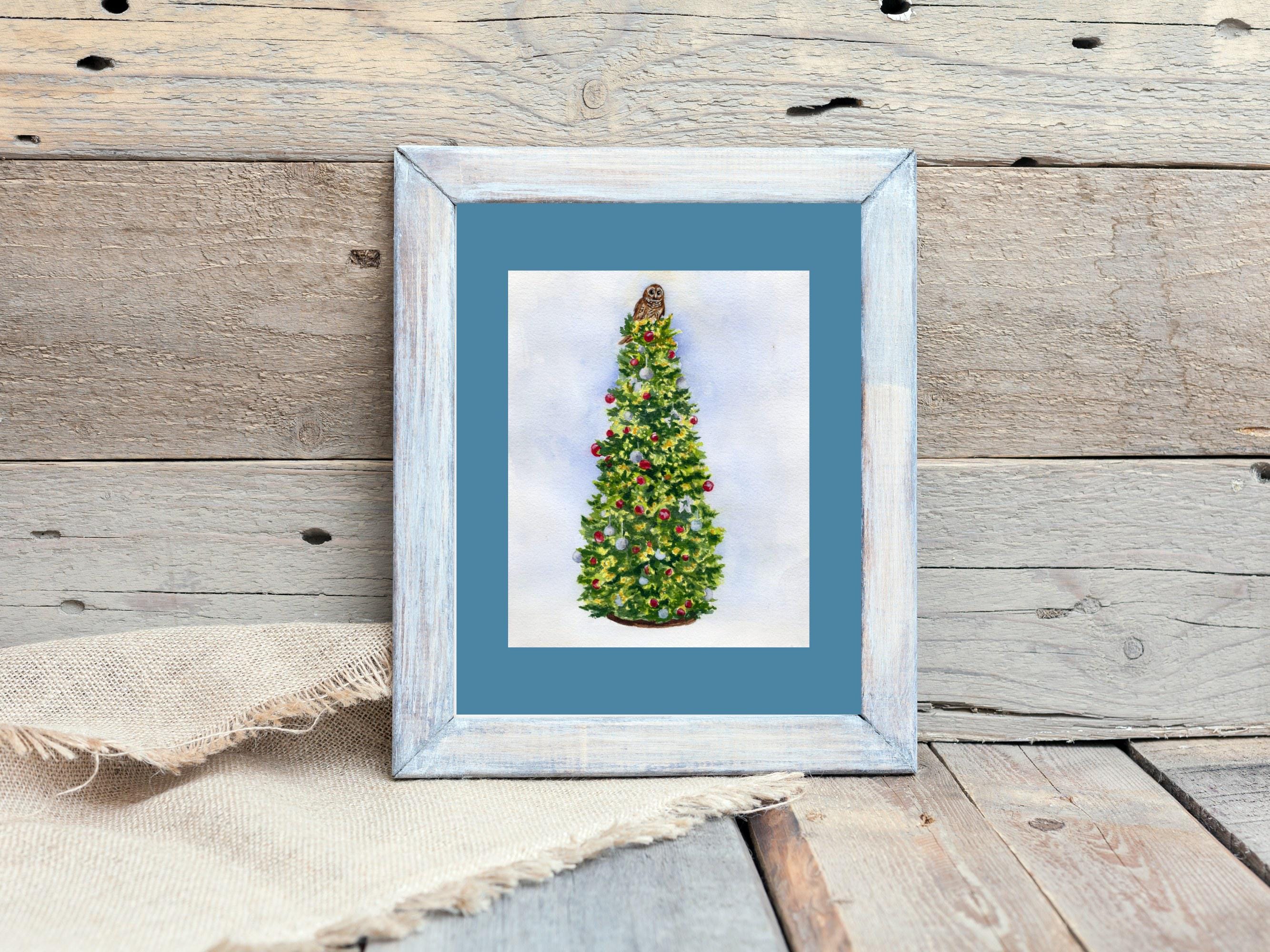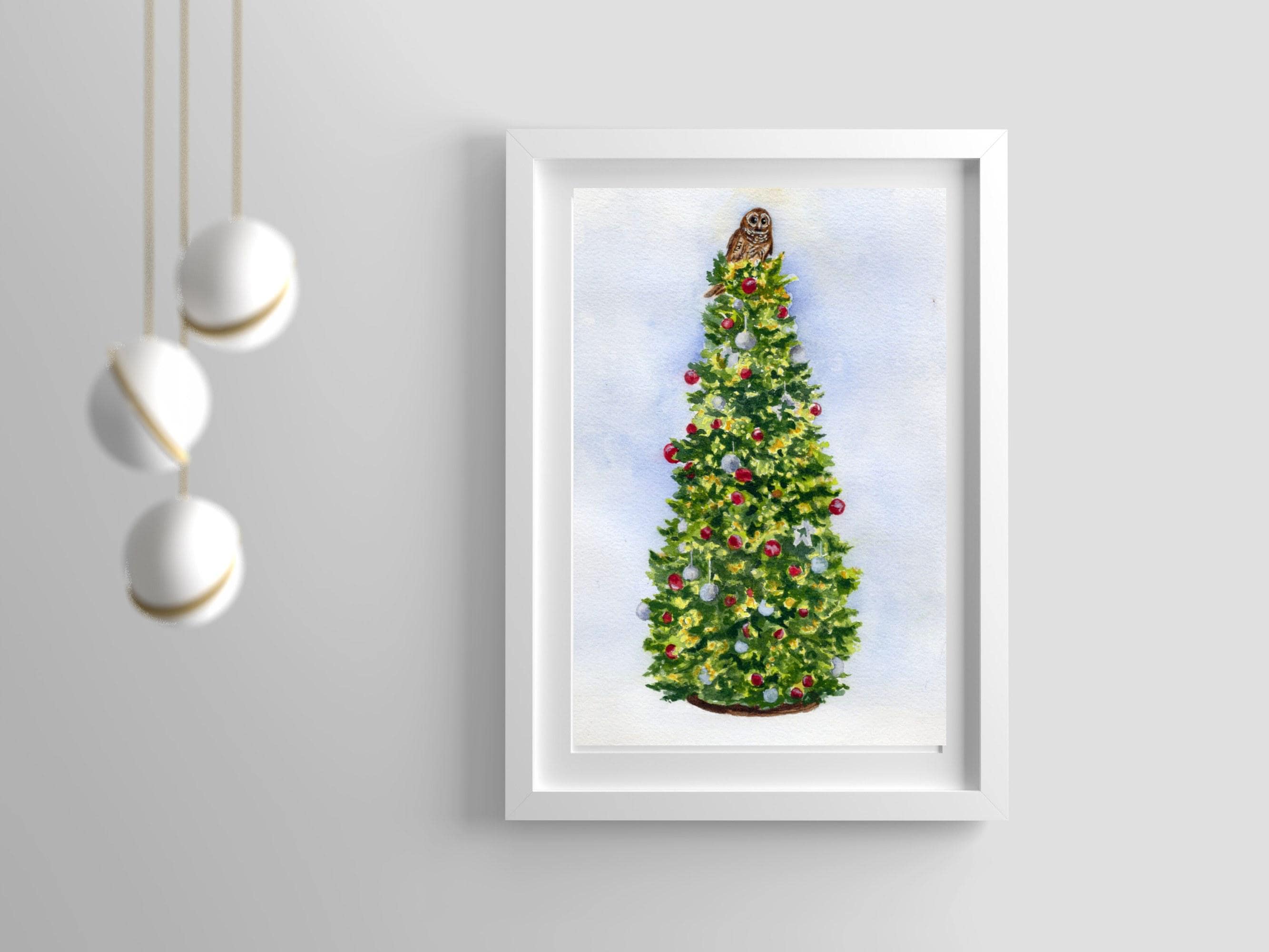 Art Print from my original watercolor painting titled Who? Use this beautiful holiday wall art to bring a touch of Nature themed Christmas to your home. Give a print as a gift to someone who perhaps cannot have a real Christmas tree and a paper tree would be perfect. Prints are available in 5x7, 8x10, 11x14