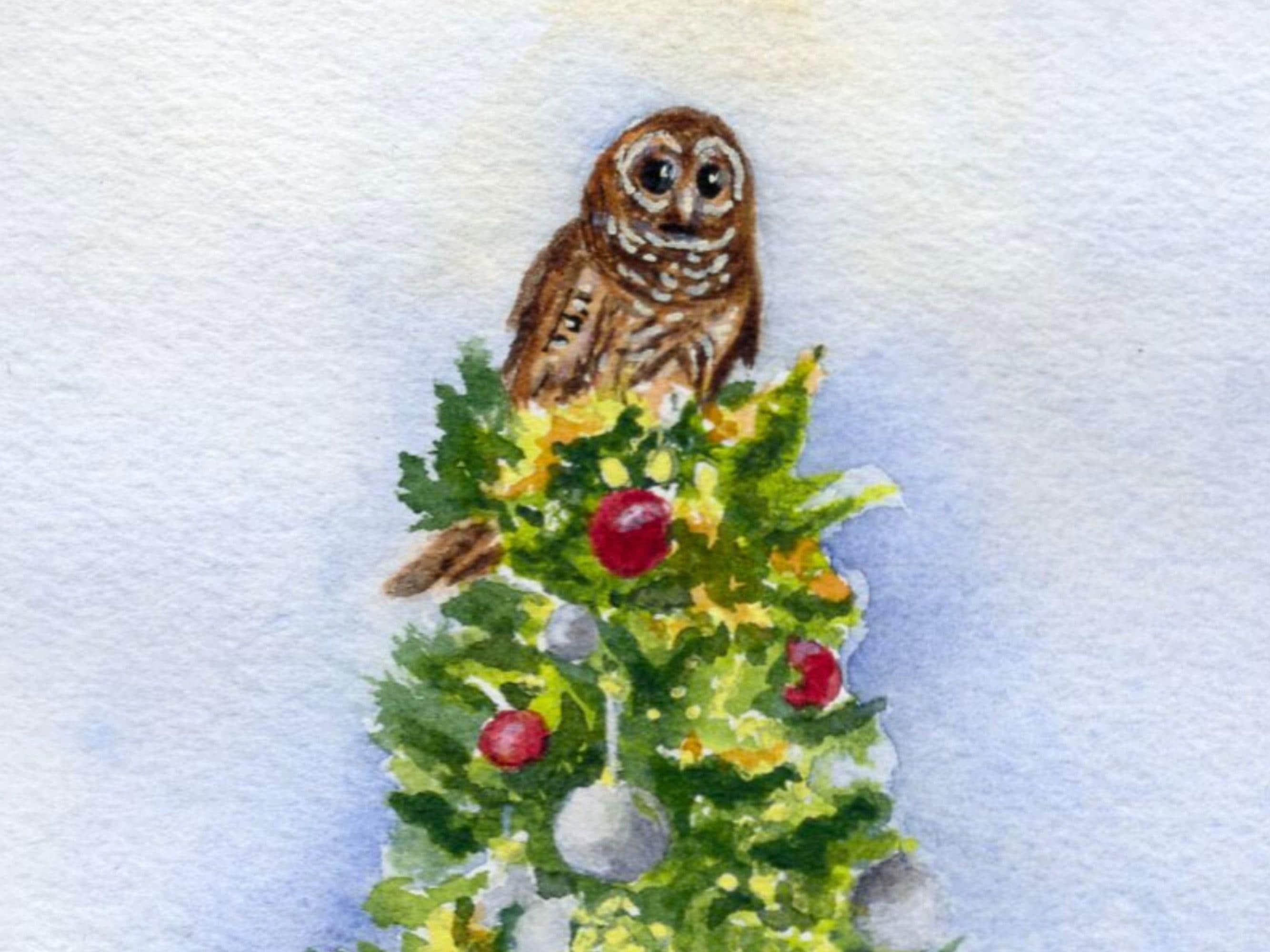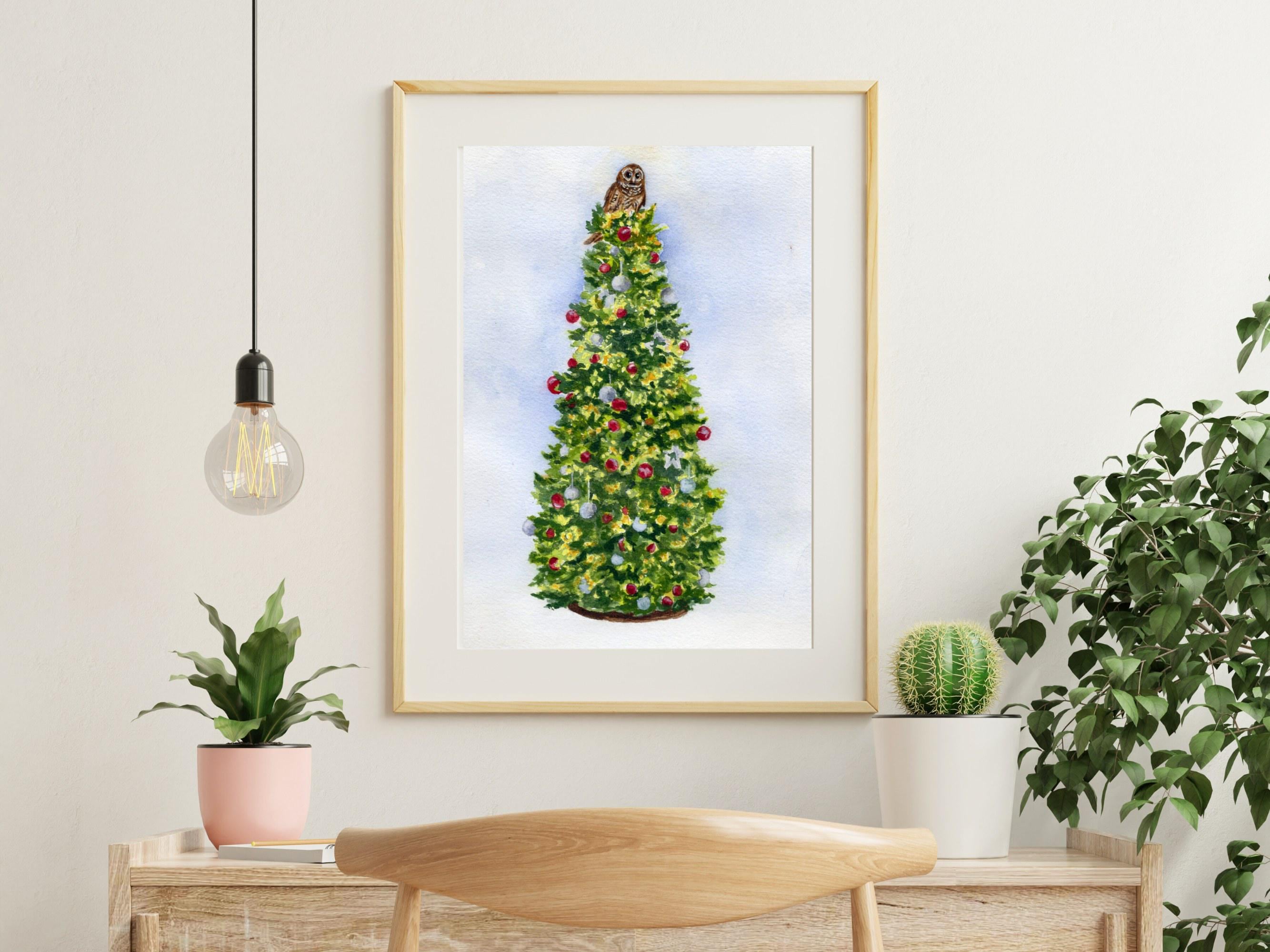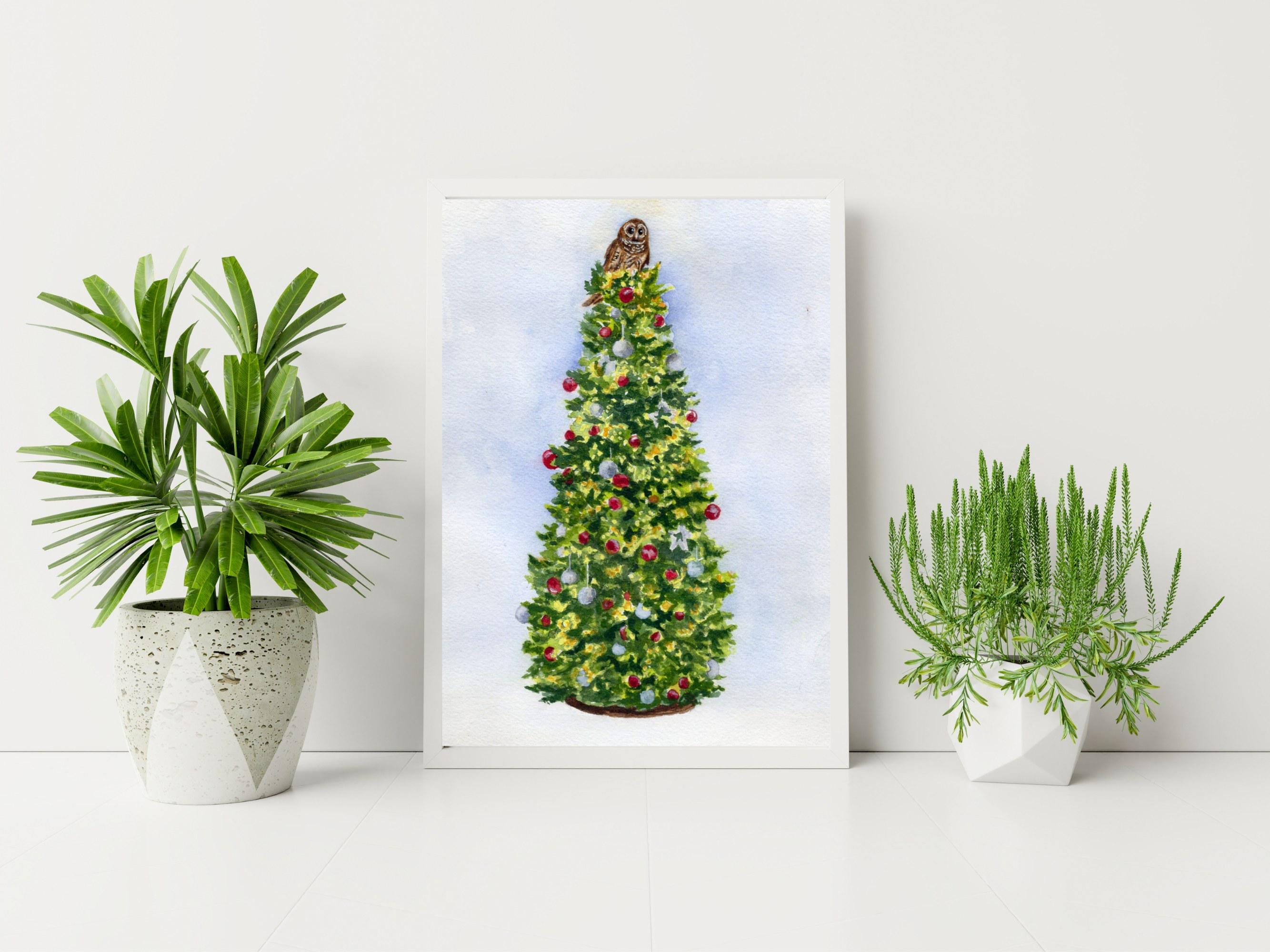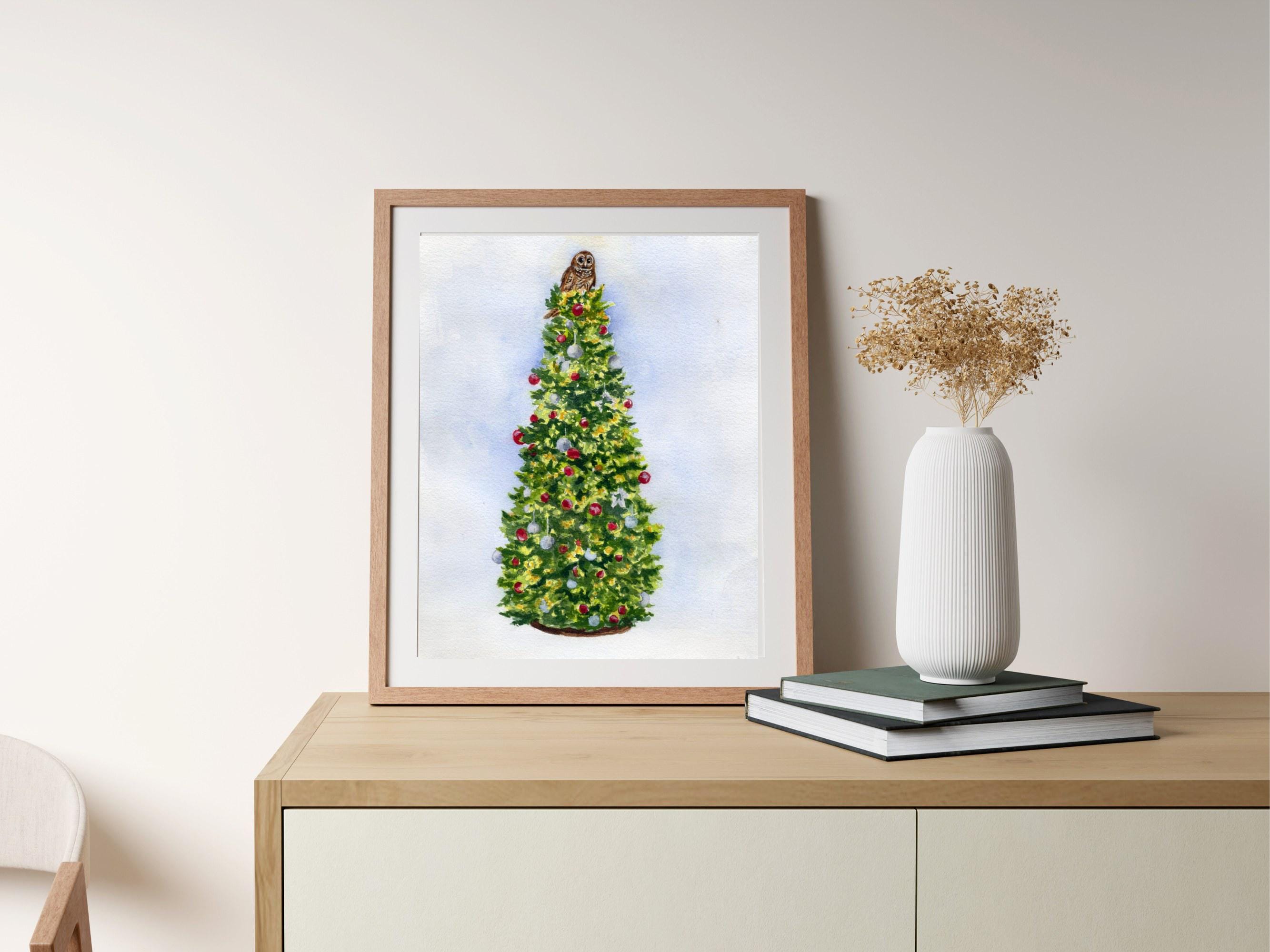 Art Print from my original watercolor painting titled Who? Use this beautiful holiday wall art to bring a touch of Nature themed Christmas to your home. Give a print as a gift to someone who perhaps cannot have a real Christmas tree and a paper tree would be perfect. Prints are available in 5x7, 8x10, 11x14