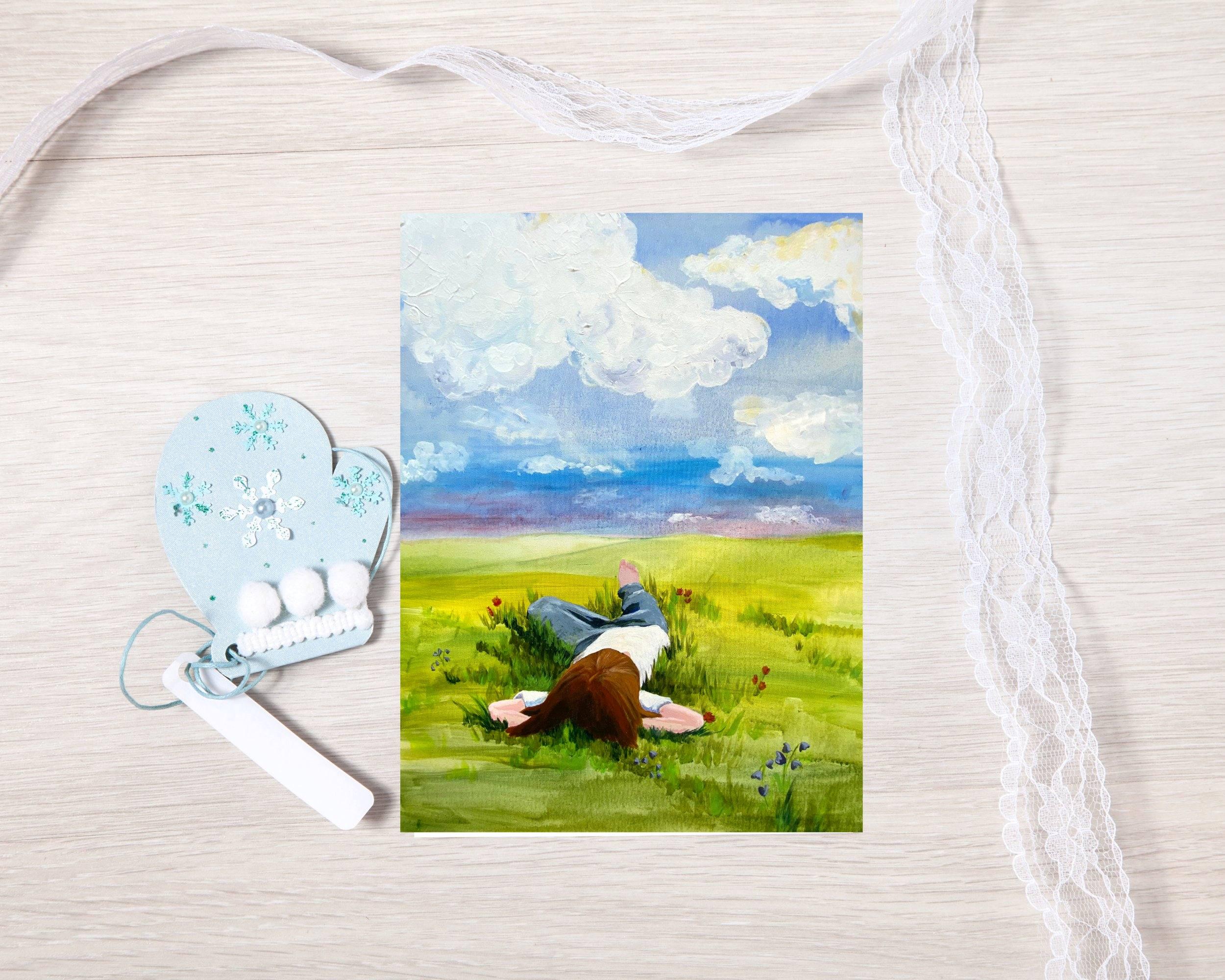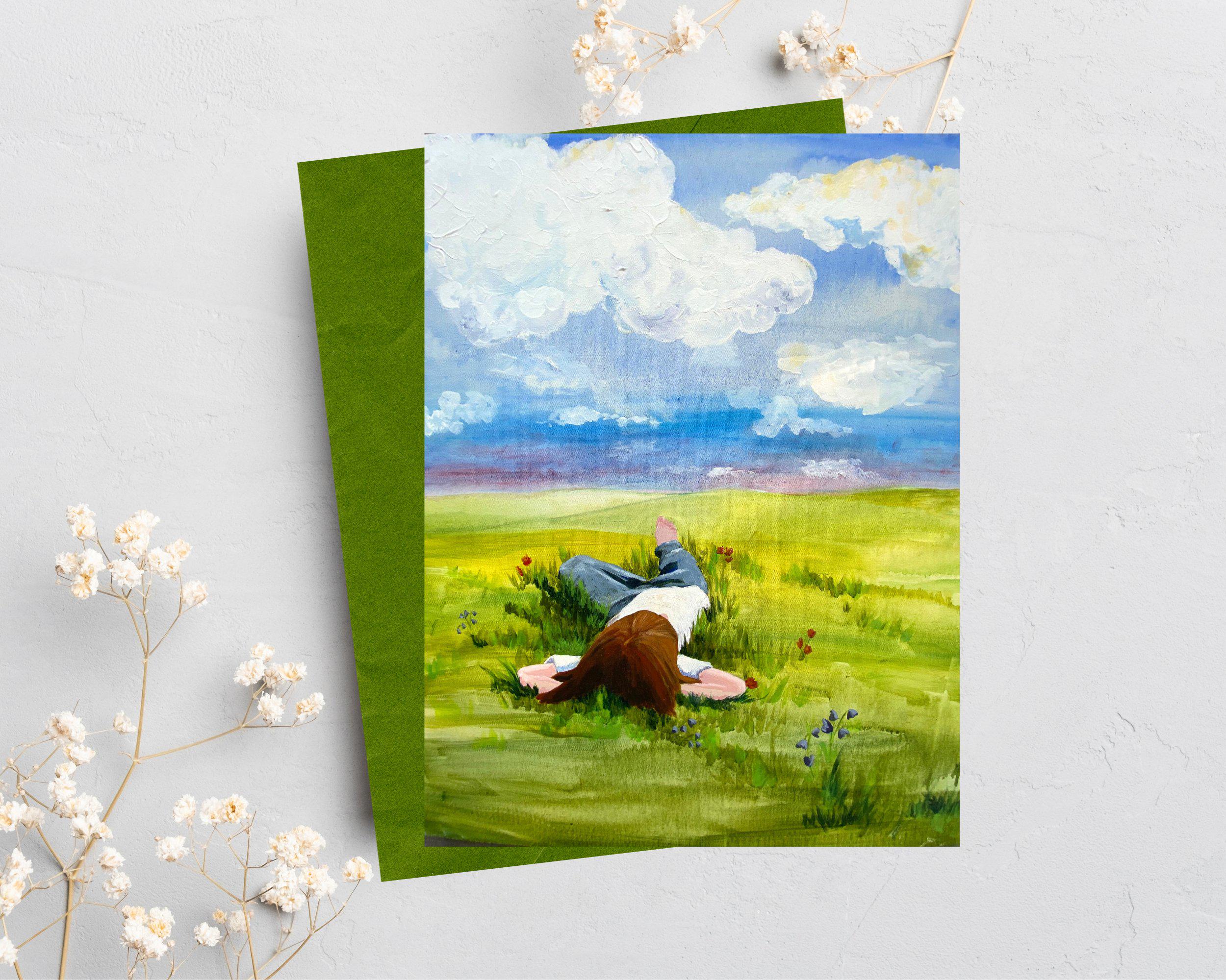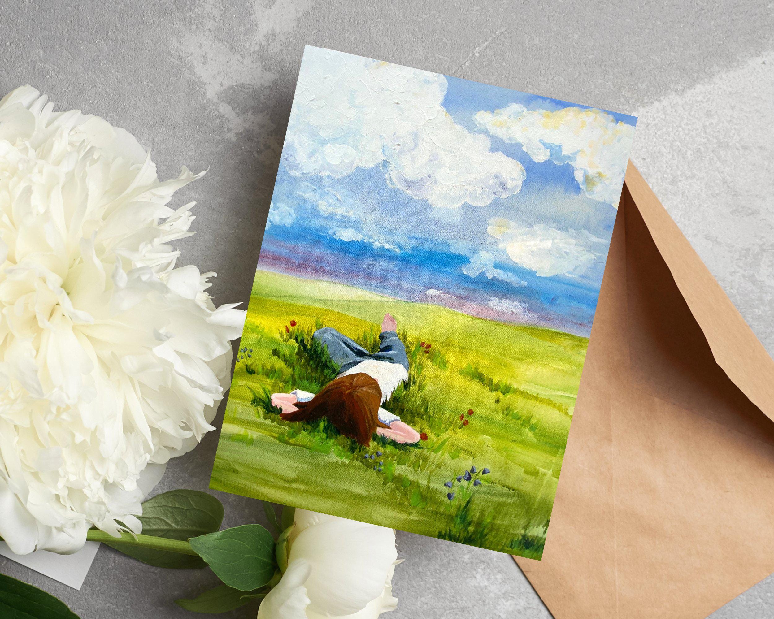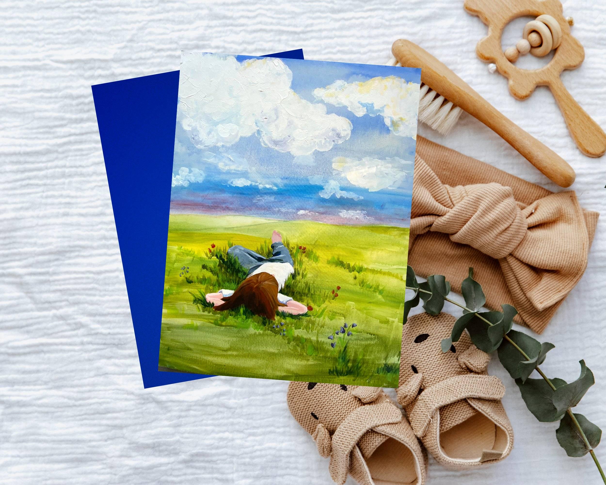 This is a greeting card made from my original portrait painting titled "Girl in the Grass".