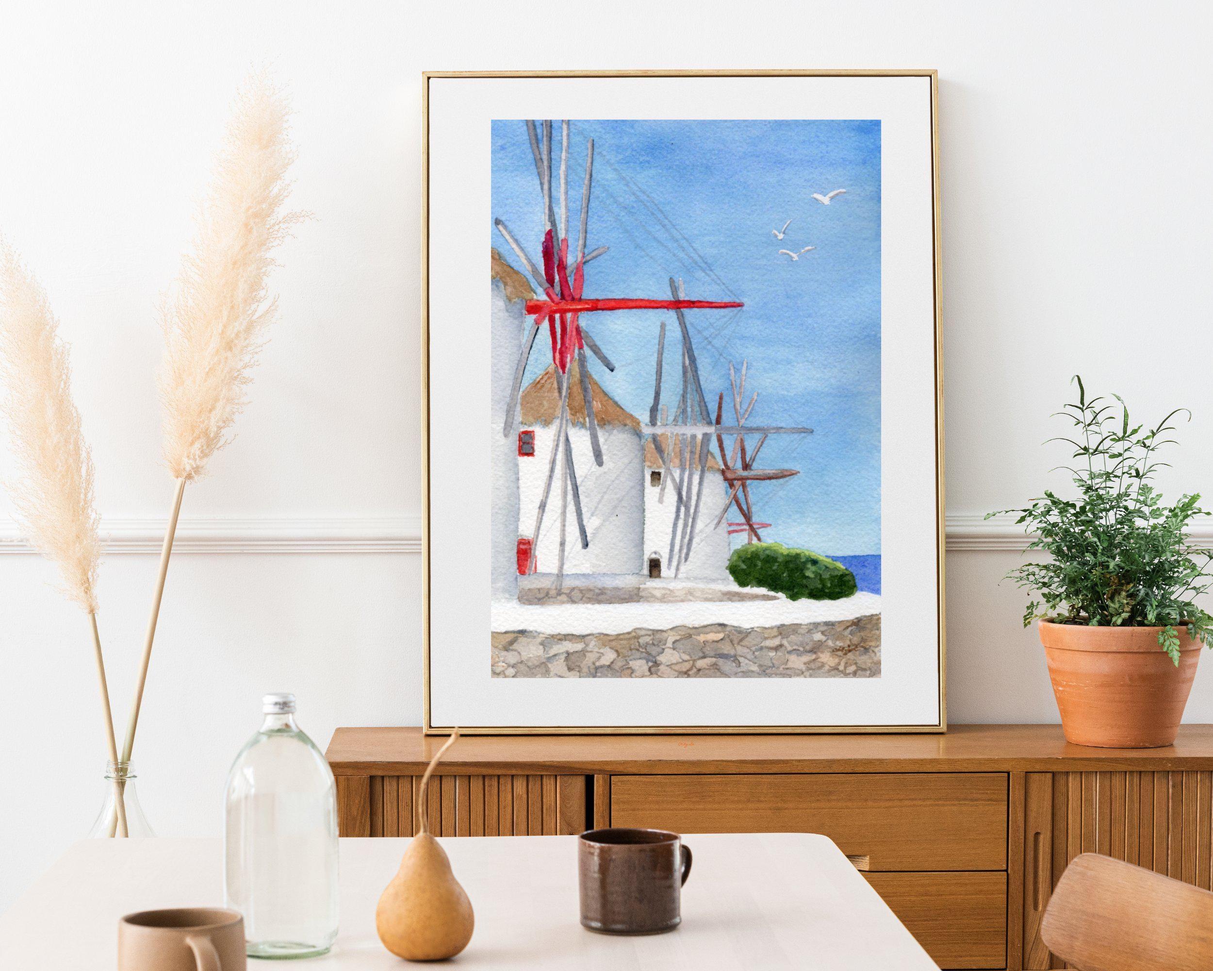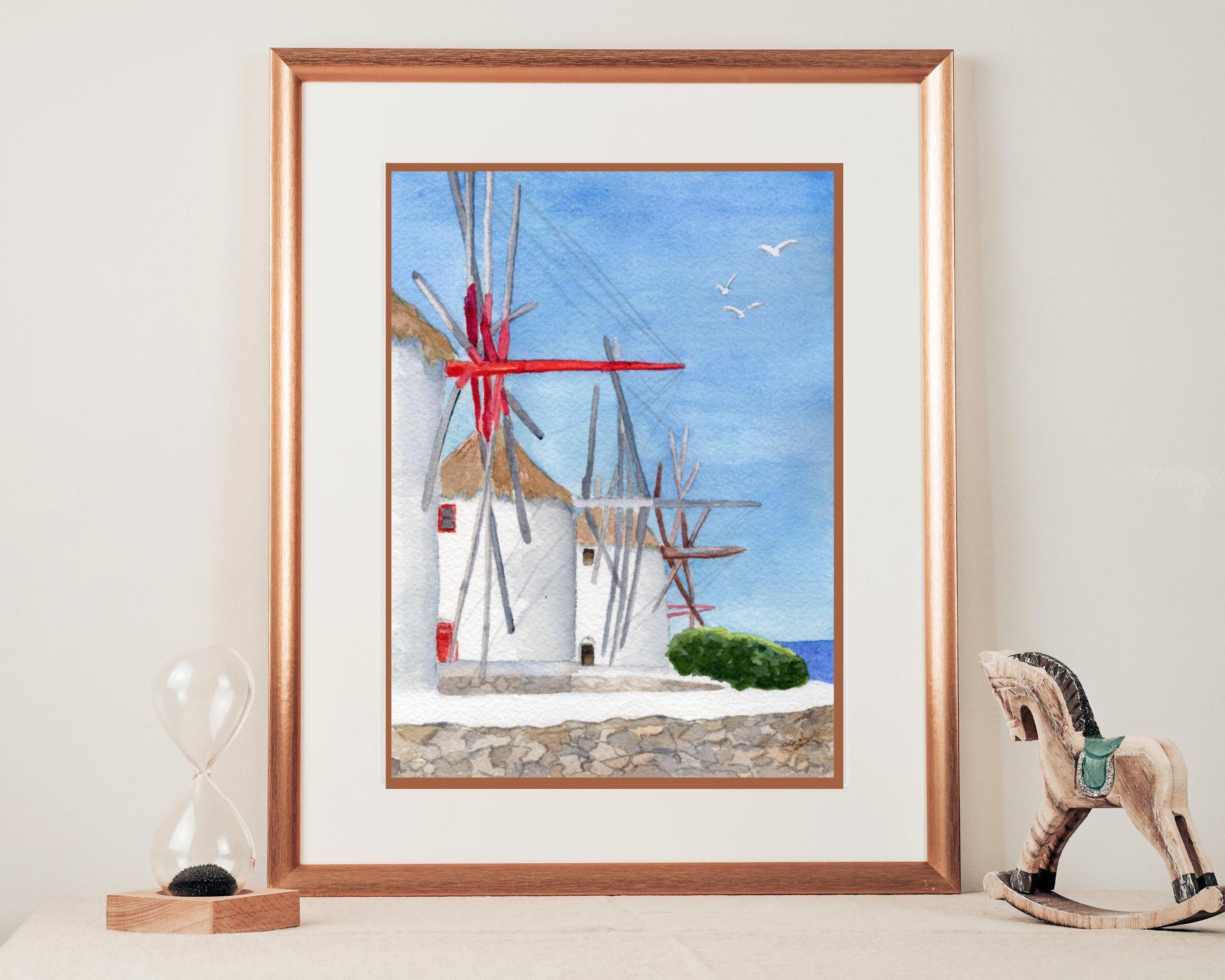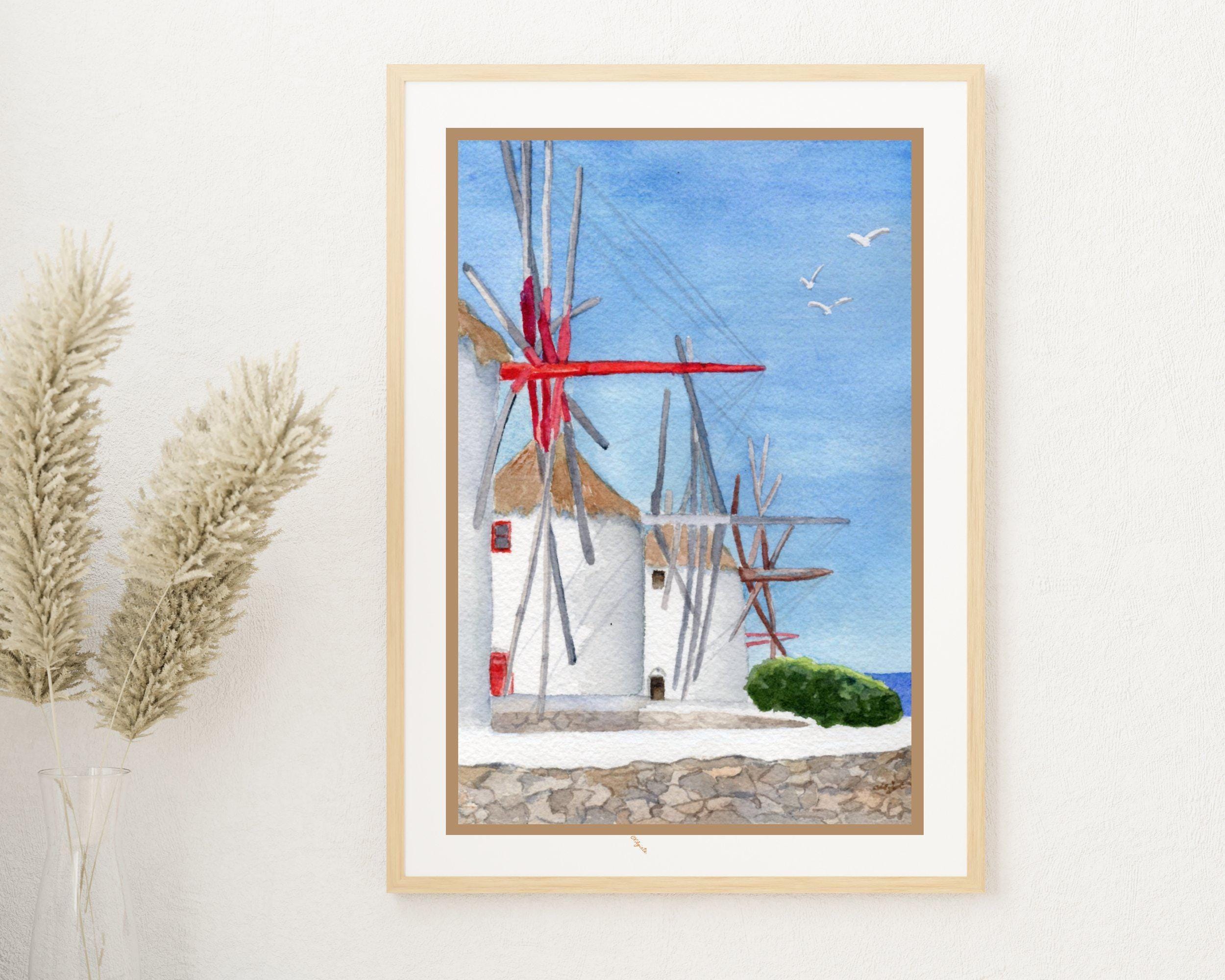 This print is made from my original watercolor painting titled 'Mikonos Windmills '.