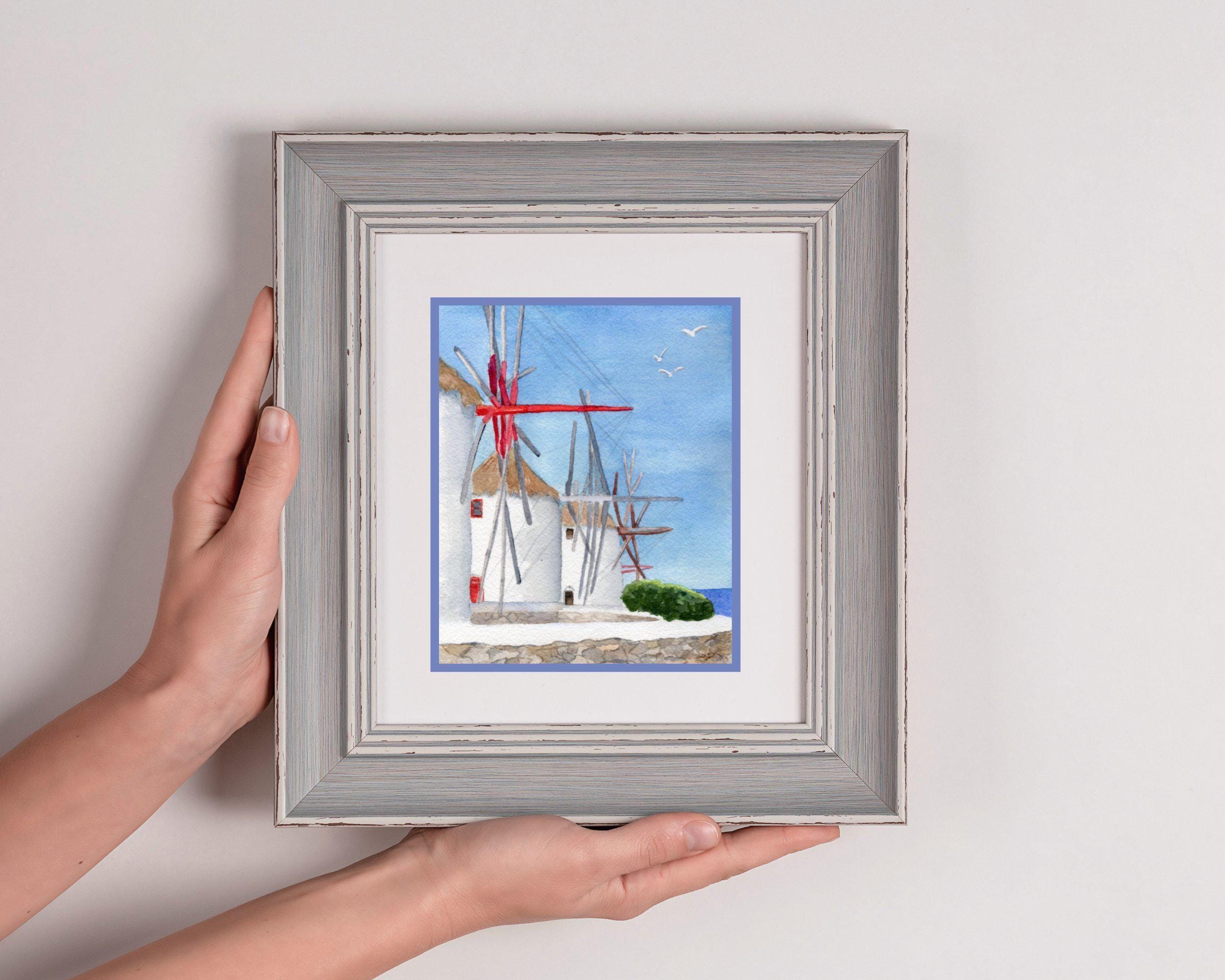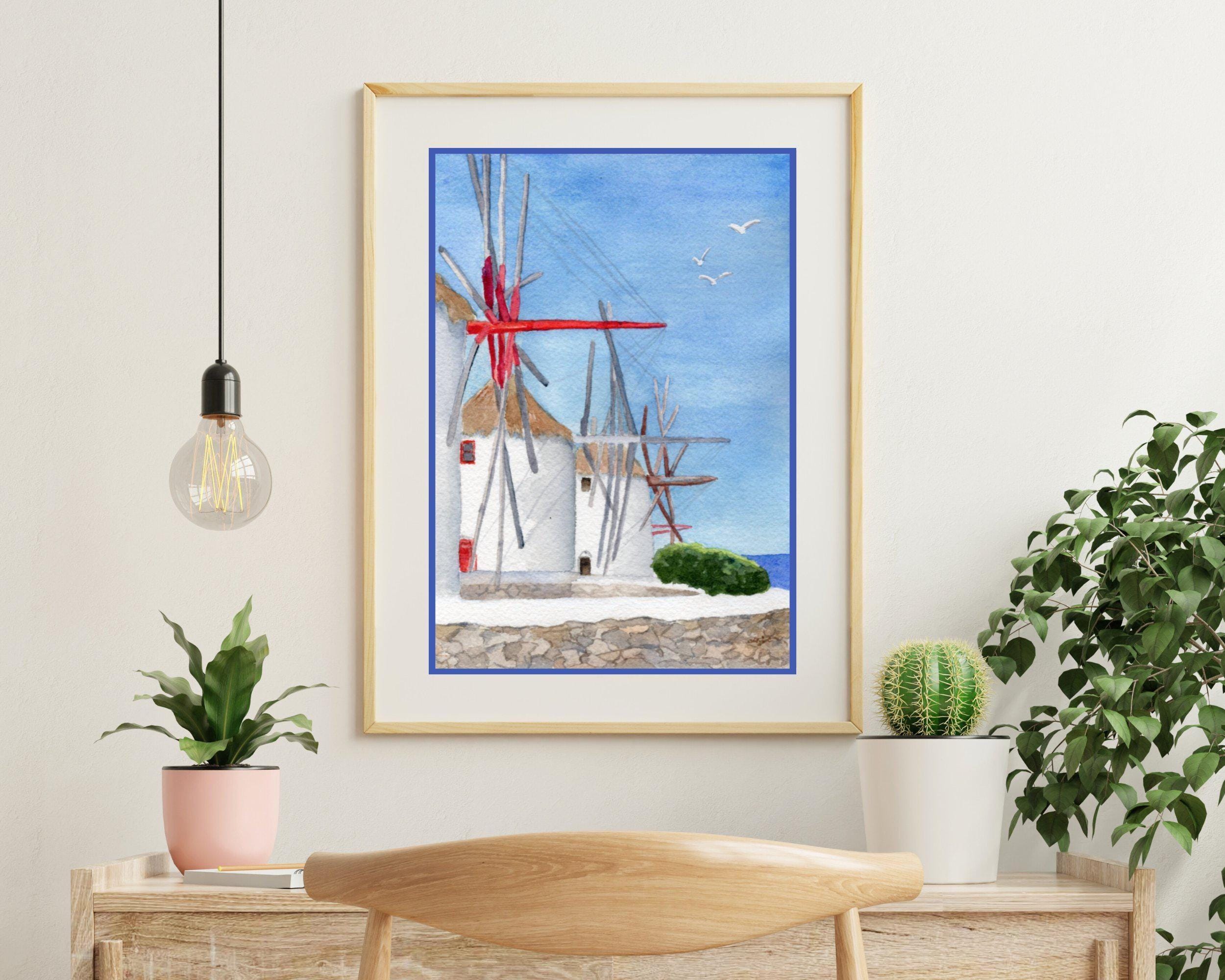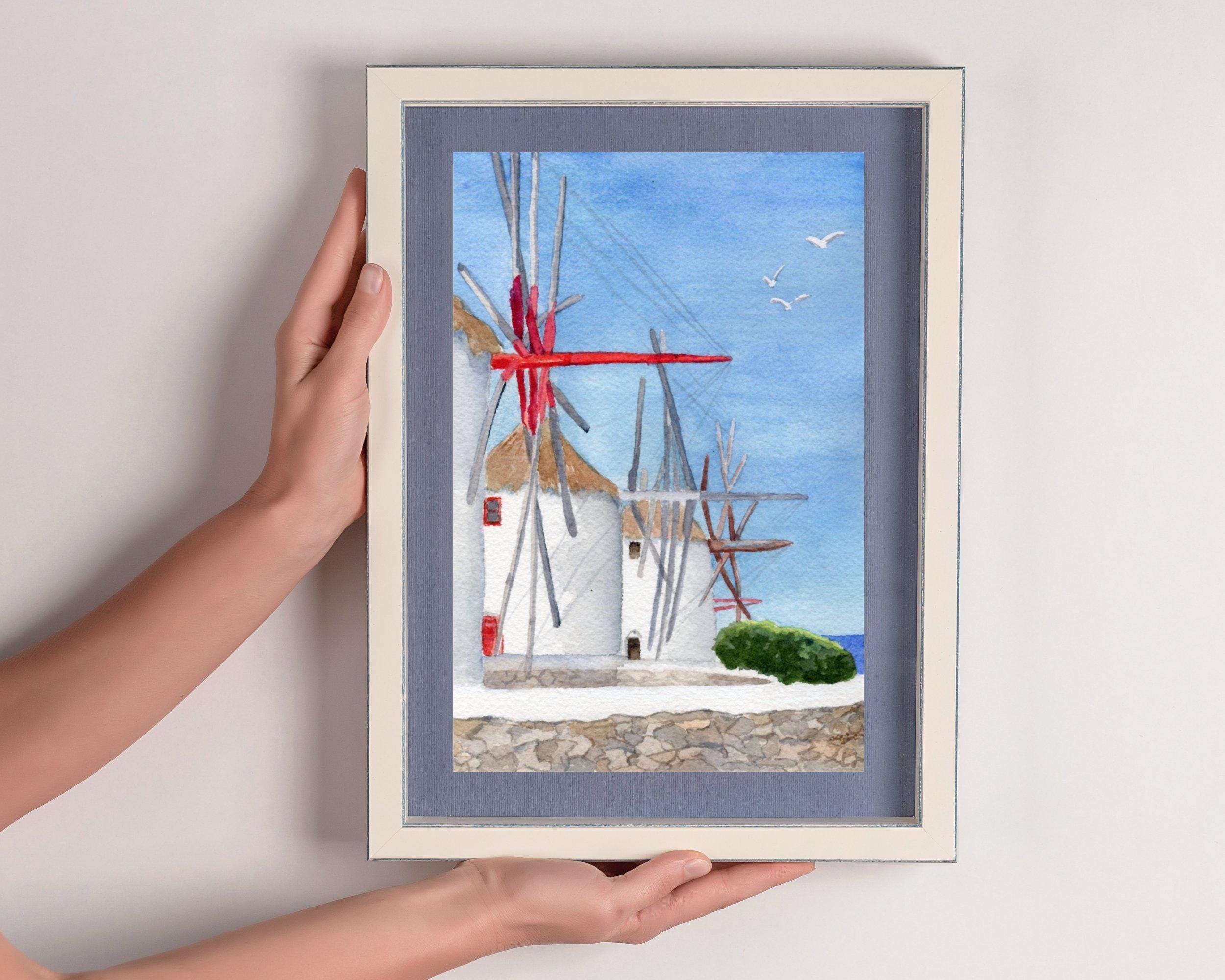 This print is made from my original watercolor painting titled 'Mikonos Windmills '.