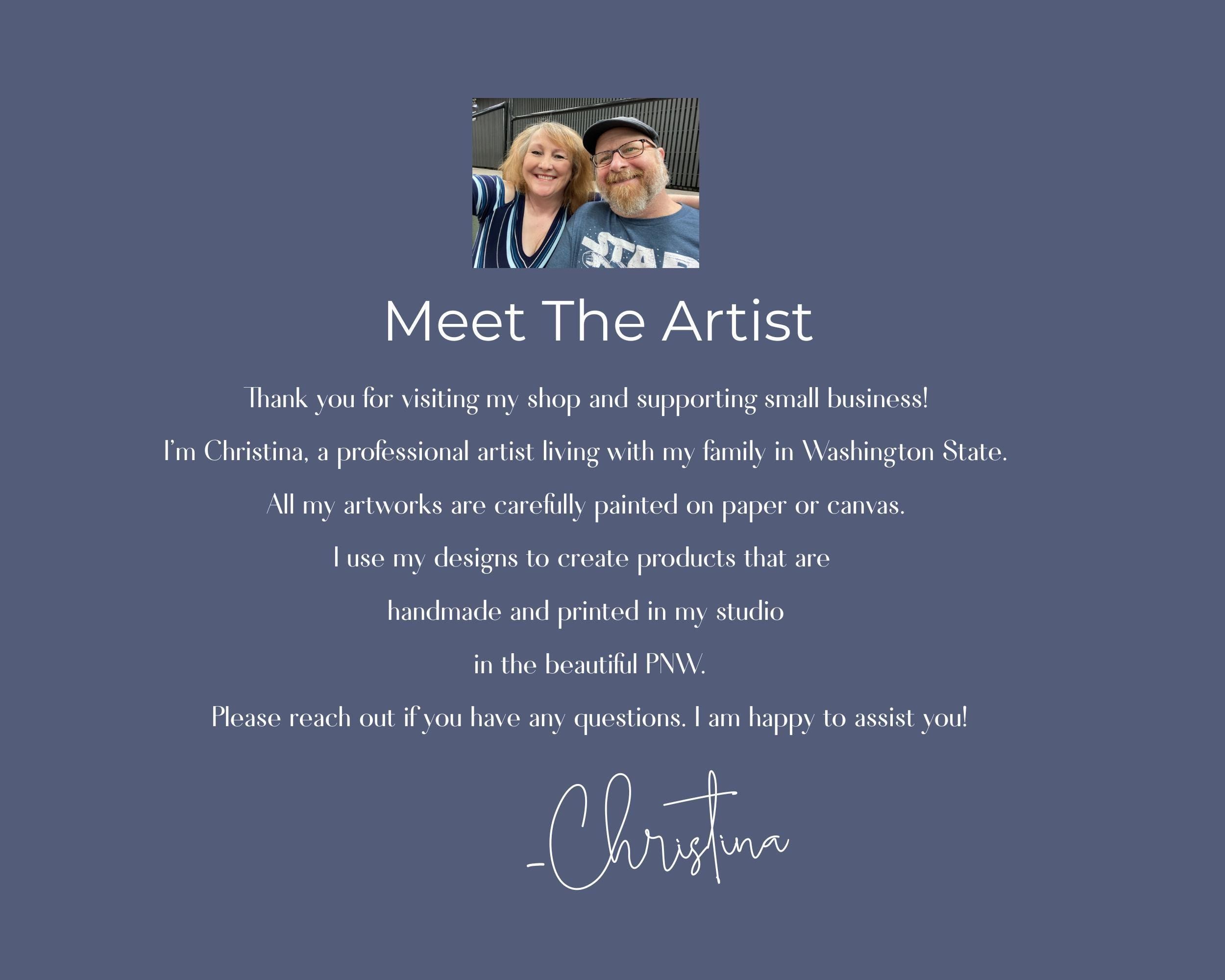 ChristinaVilgiateArt is based in Colorado, USA and has been selling watercolor paintings, acrylic paintings and prints on Etsy since 2016. She sells mainly to buyers in the United States, but offers her artwork for sale world-wide. Christina uses Etsy Shipping to fulfill her orders and further the USPS. Christina uses Etsy to host buyers’ personal information.