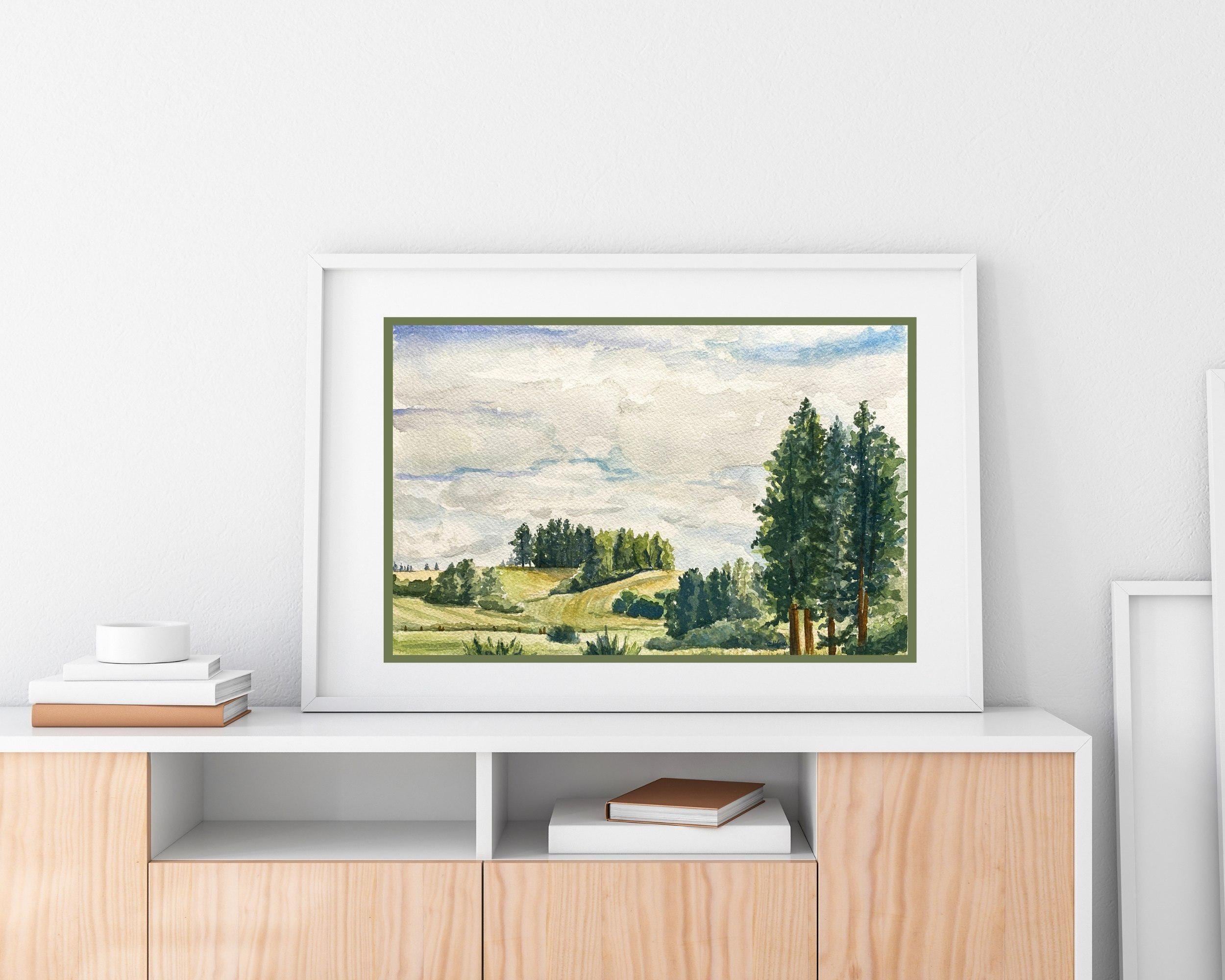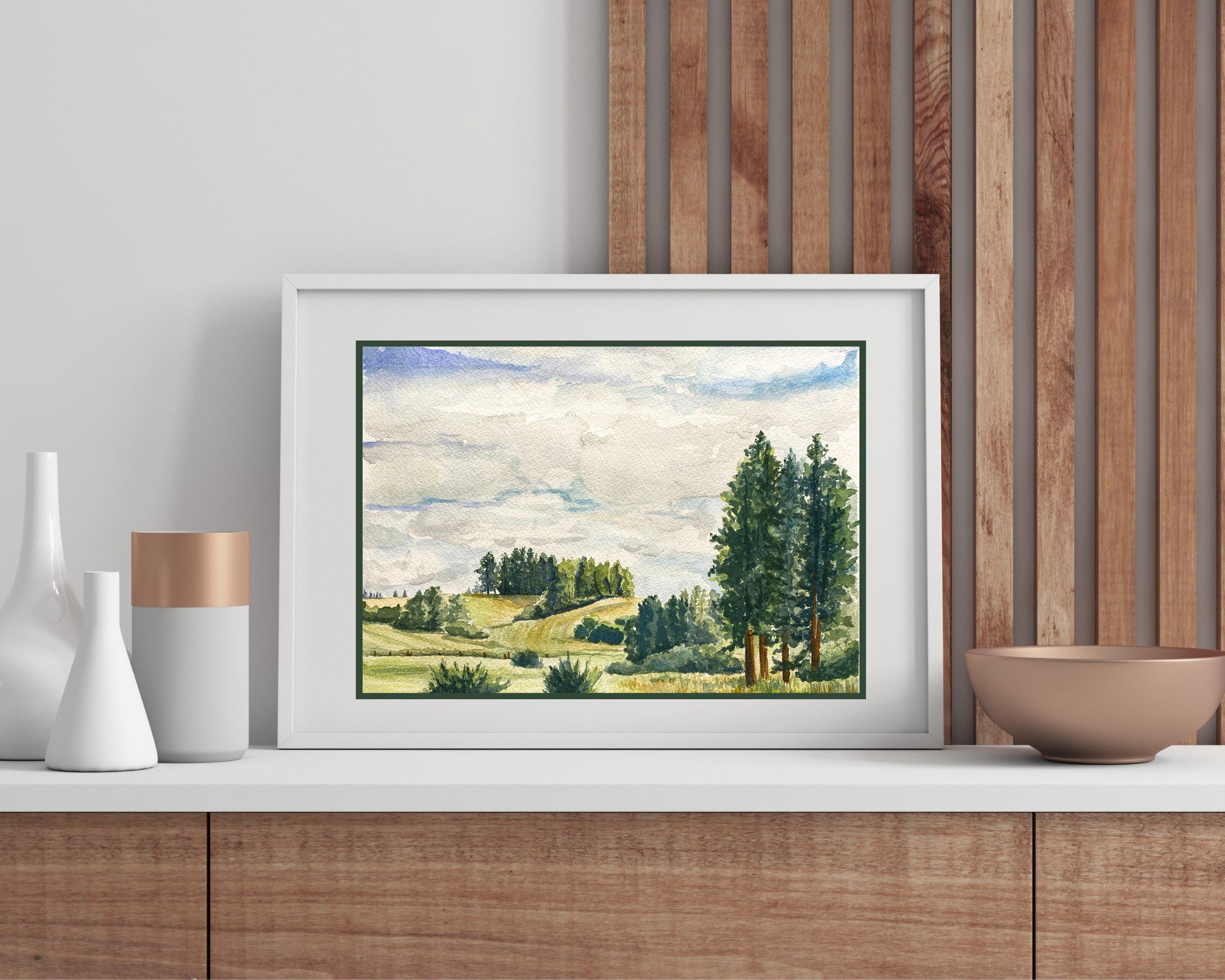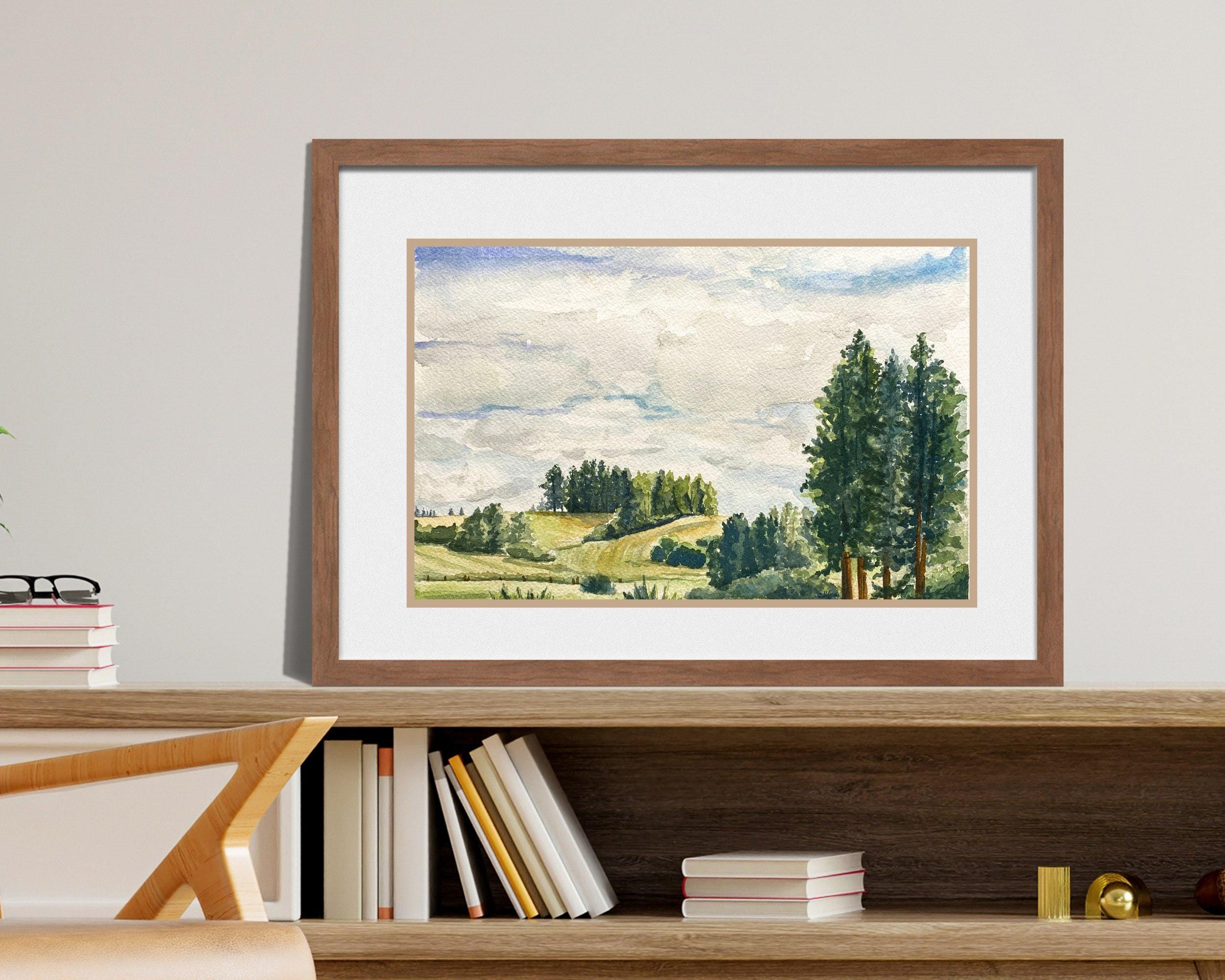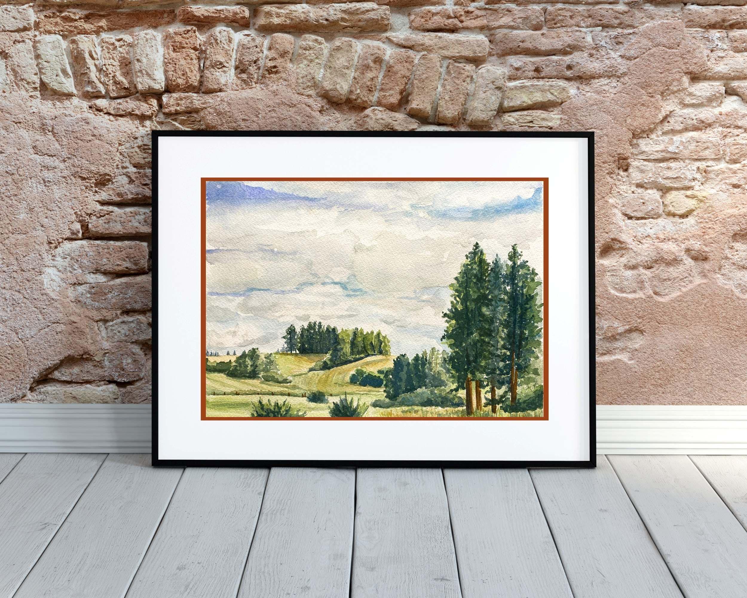 Are you looking for cozy landscape to add to your home decor? Use this watercolor painting as a great addition in your kitchen, dining room, bathroom or bedroom. This art print is horizontal. The frame is not included. Art prints are available in 7"x5", 10"x8", 14"x11", and 16"x12".