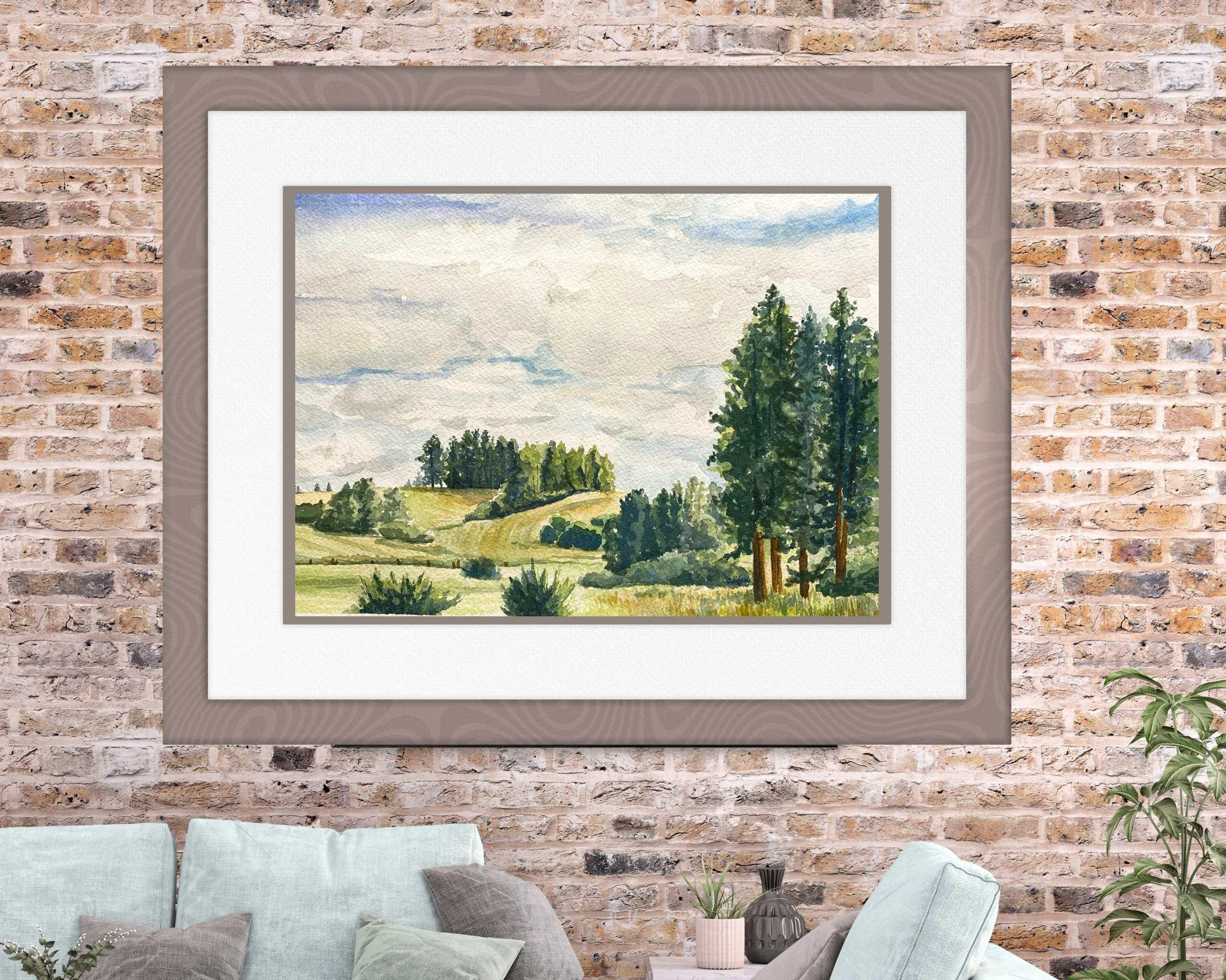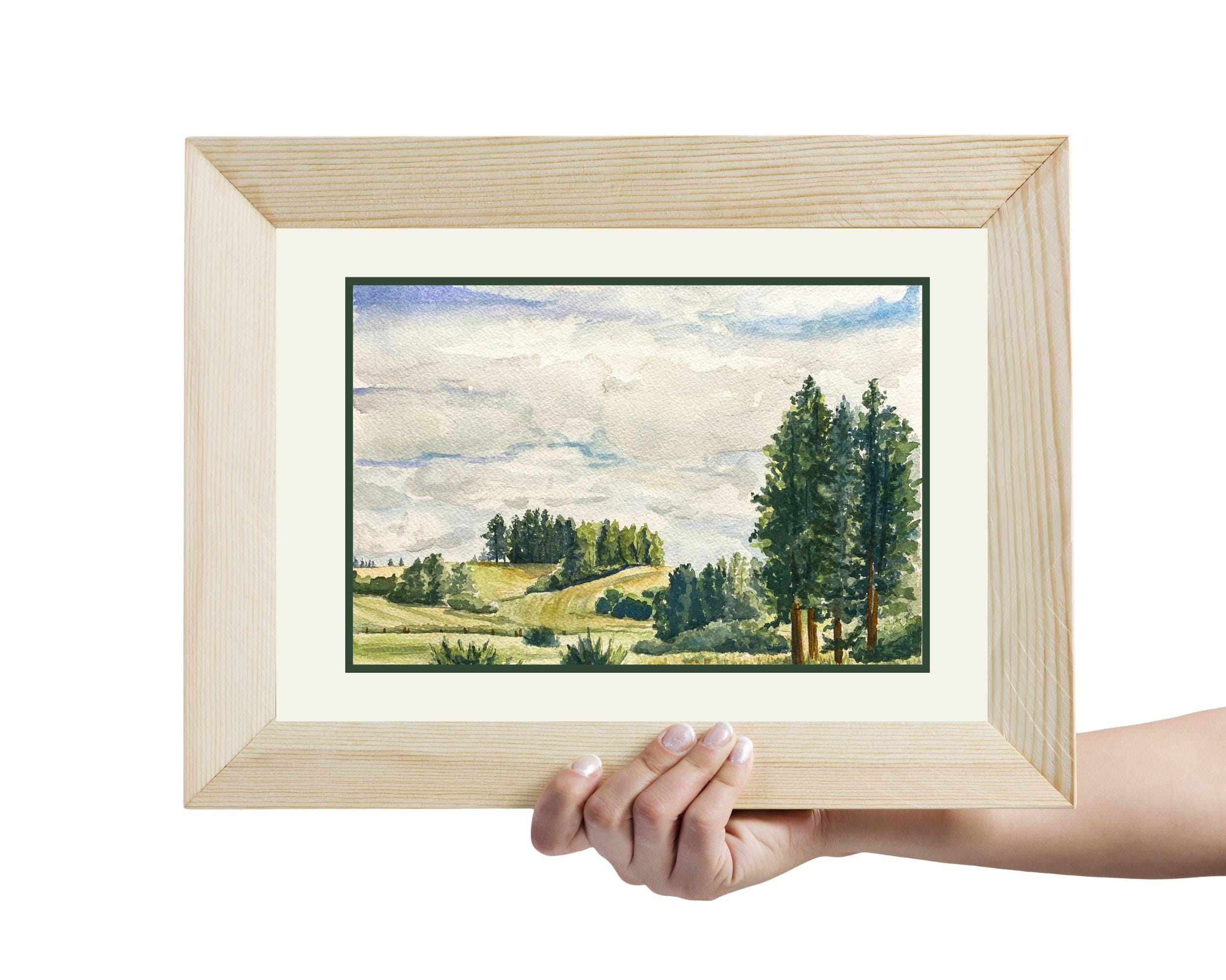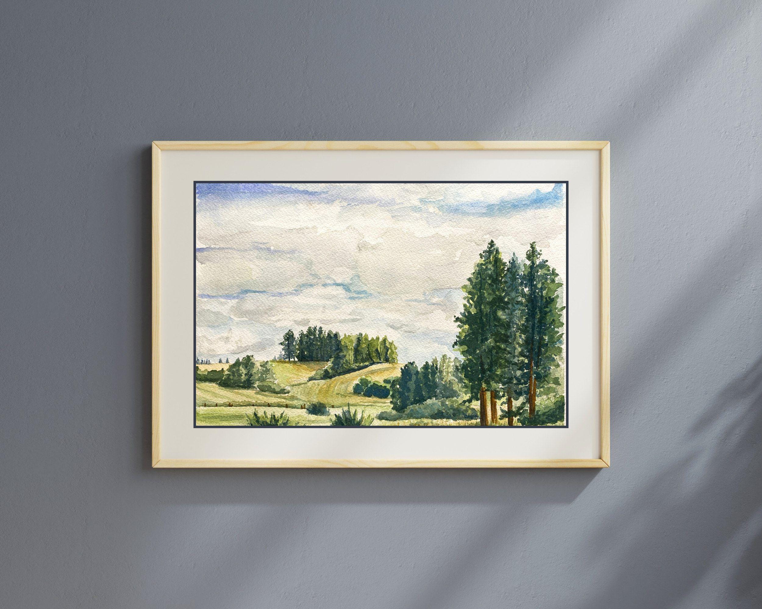 Are you looking for cozy landscape to add to your home decor? Use this watercolor painting as a great addition in your kitchen, dining room, bathroom or bedroom. This art print is horizontal. The frame is not included. Art prints are available in 7"x5", 10"x8", 14"x11", and 16"x12".