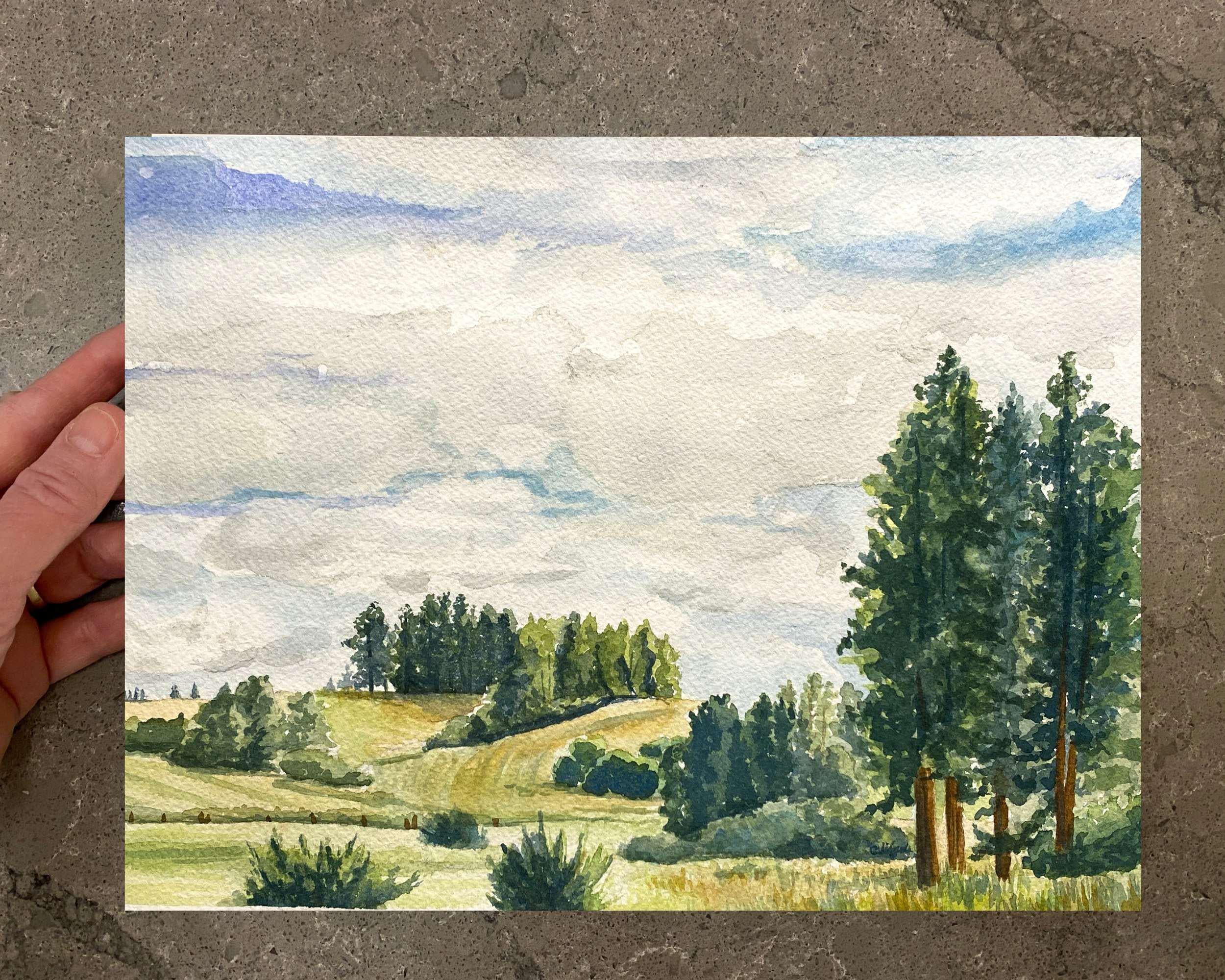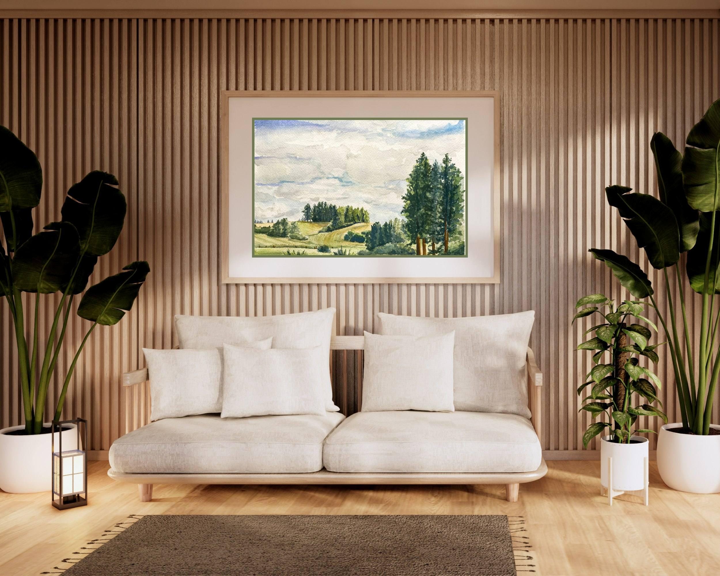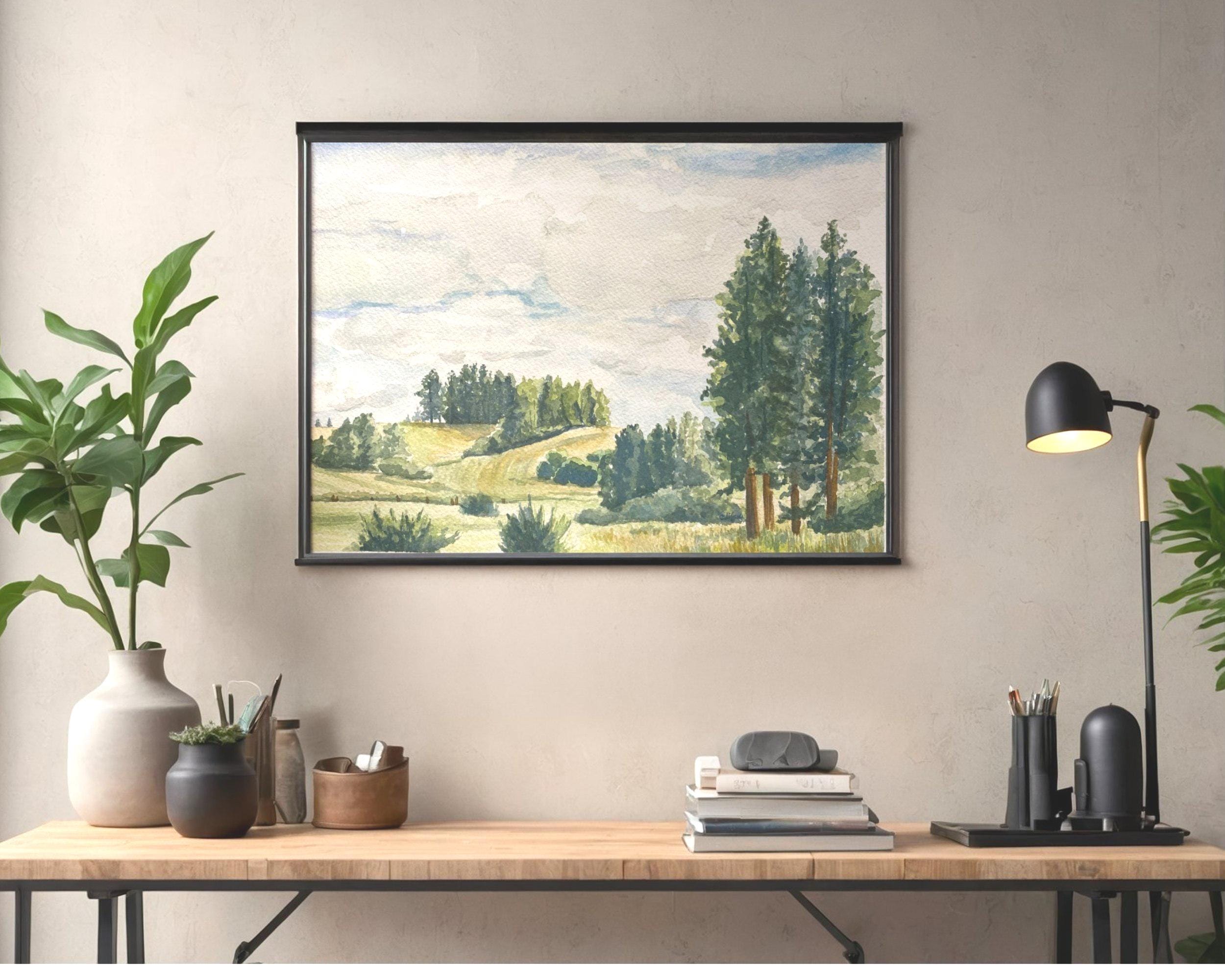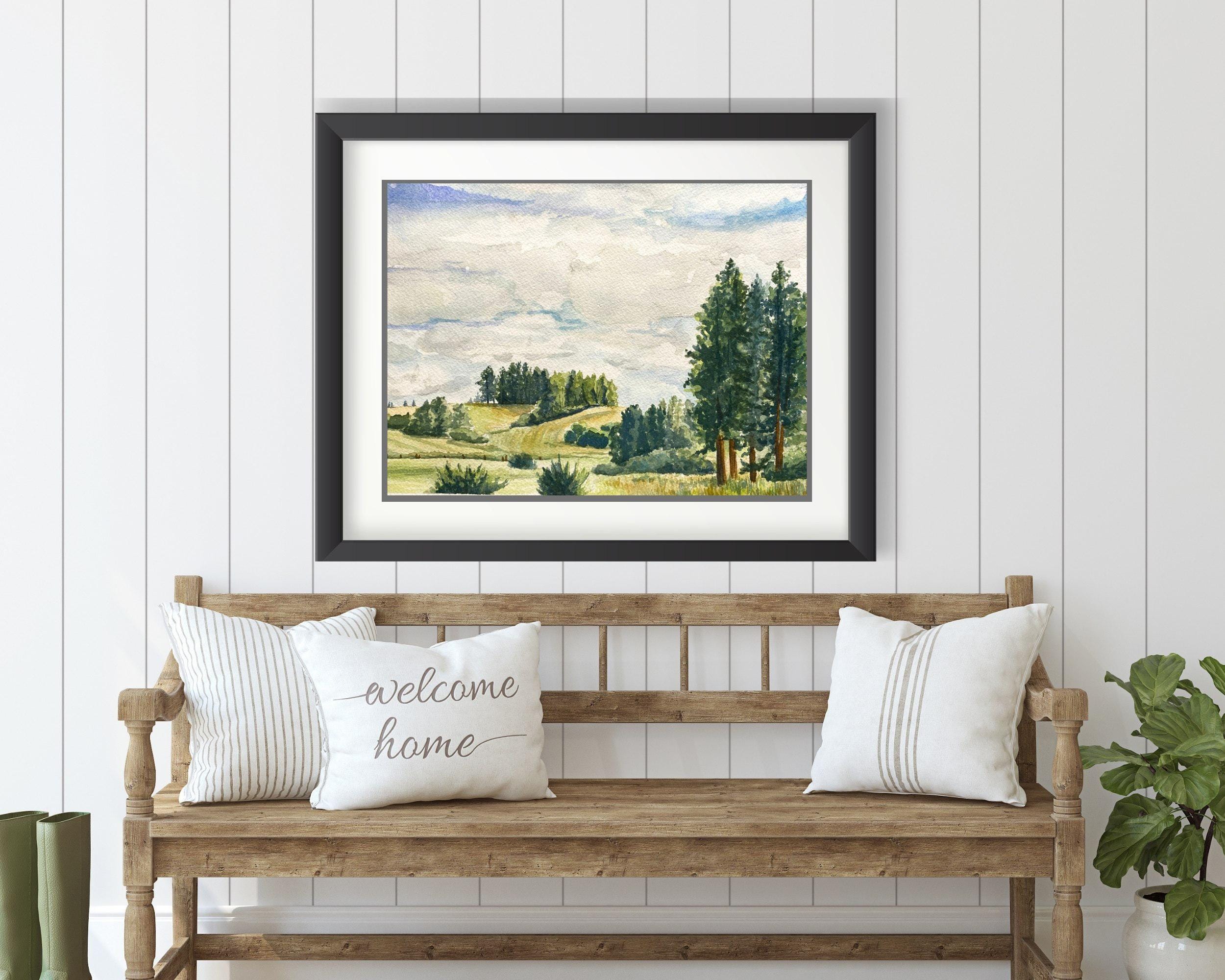 Are you looking for cozy landscape to add to your home decor? Use this watercolor painting as a great addition in your kitchen, dining room, bathroom or bedroom. This art print is horizontal. The frame is not included. Art prints are available in 7"x5", 10"x8", 14"x11", and 16"x12".