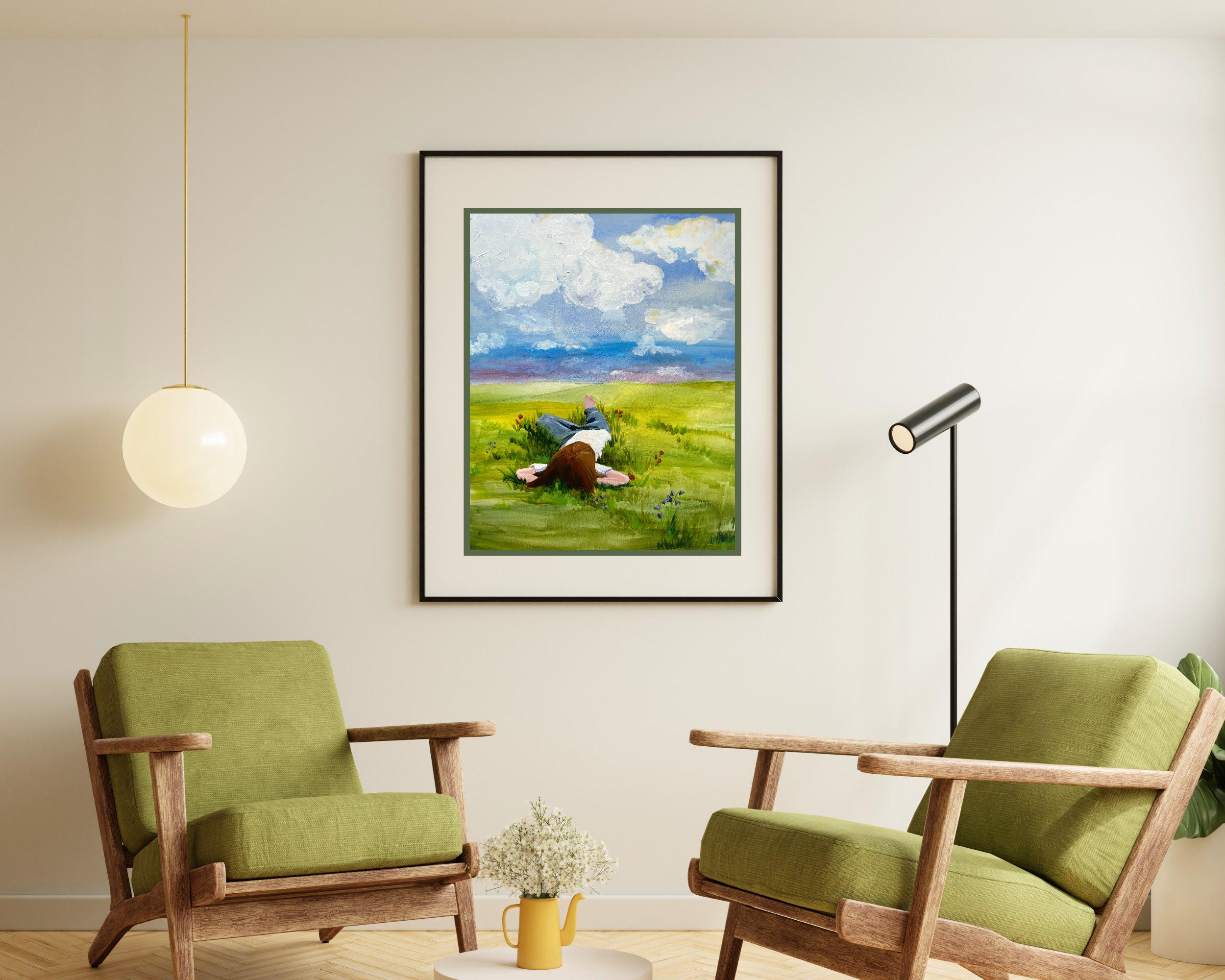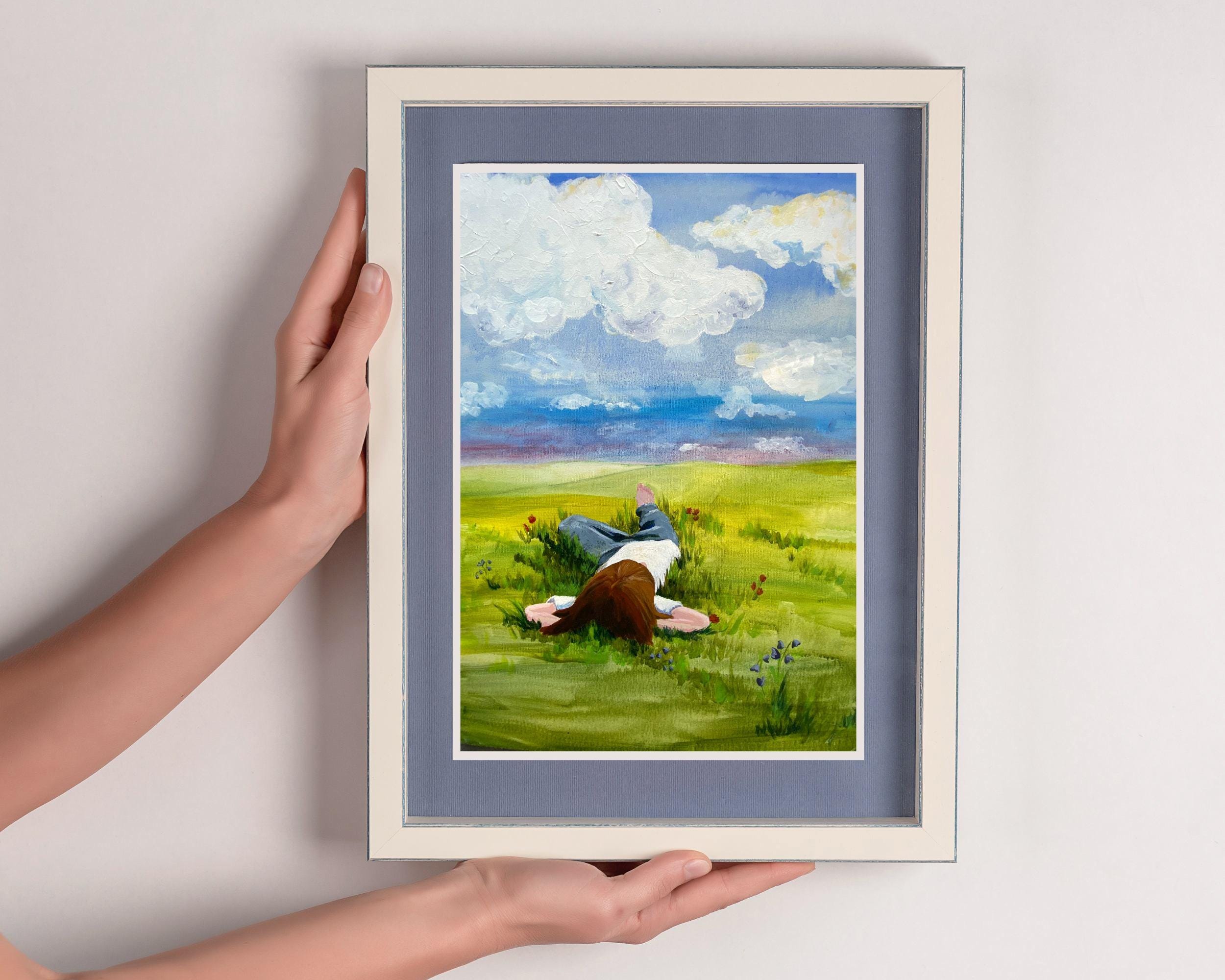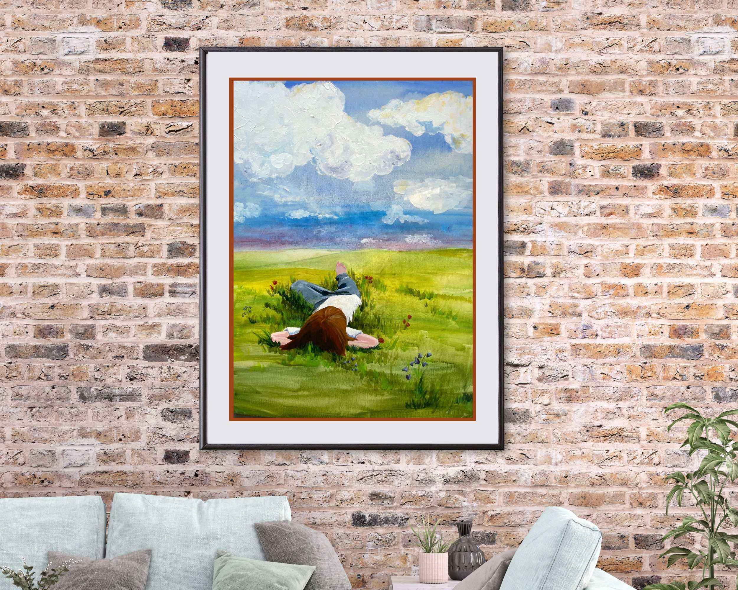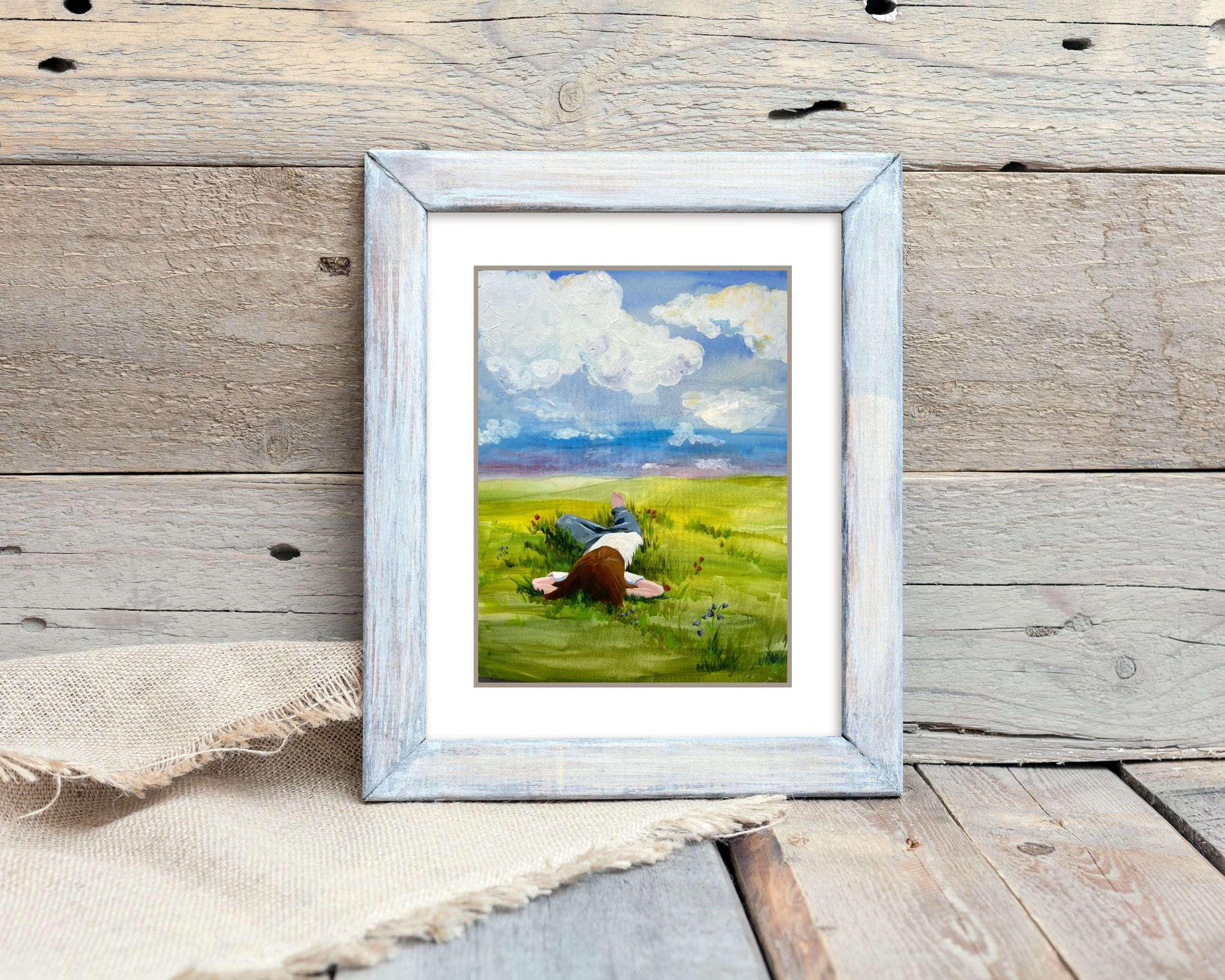 Art print from my original acrylic painting on canvas. It is titled Girl in the Grass. Sizes on Paper: