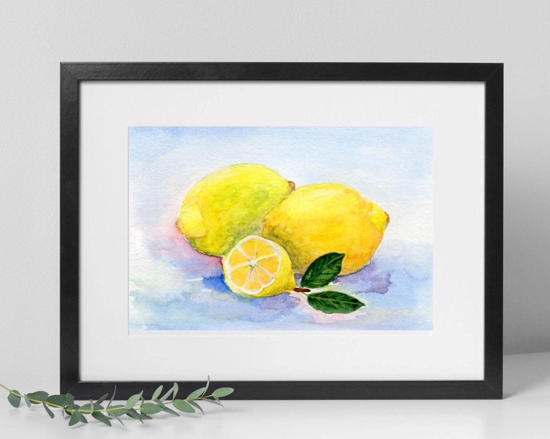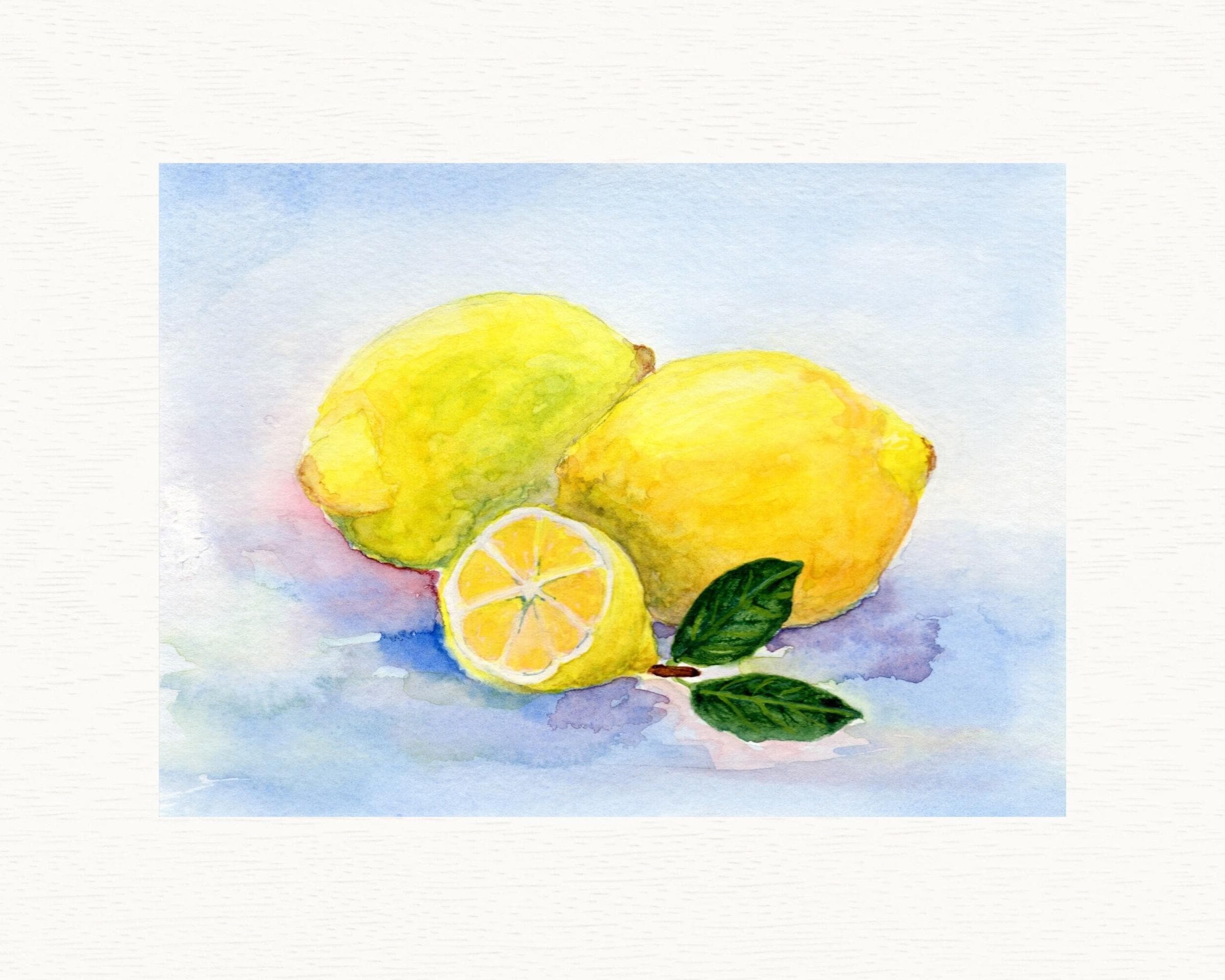Print made from my original watercolor painting titled "Two and a half Lemons"